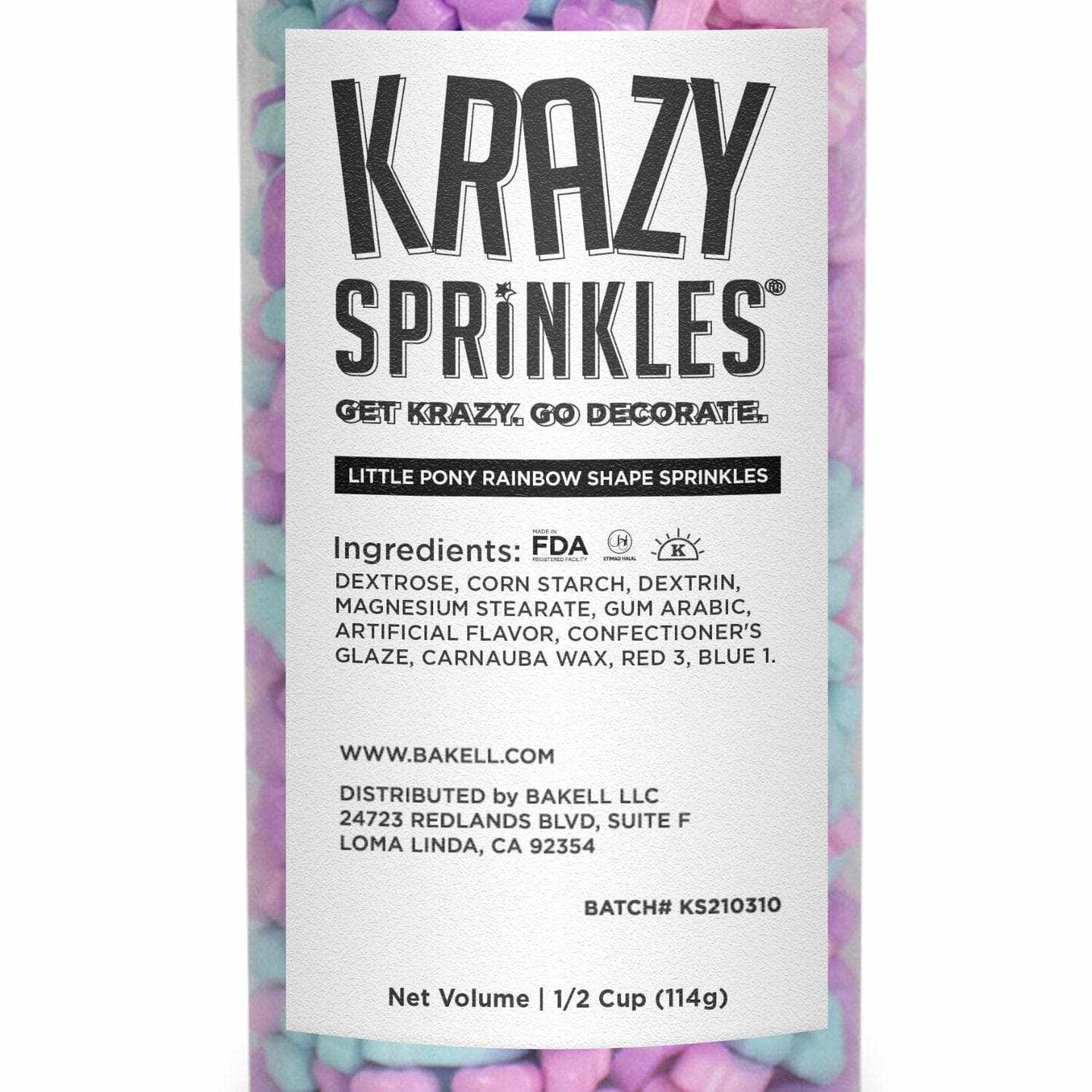 Krazy Sprinkles - Little Pony Rainbows (1/2 Cup, 1x Jar) for Cakes, Ice Cream & Cookies