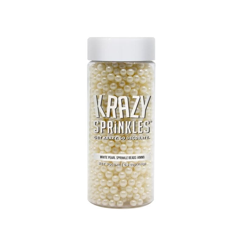 Krazy Sprinkles - White Pearl 4mm Beads (1/2 Cup, 1x Jar) for Cakes, Ice Cream & Cookies