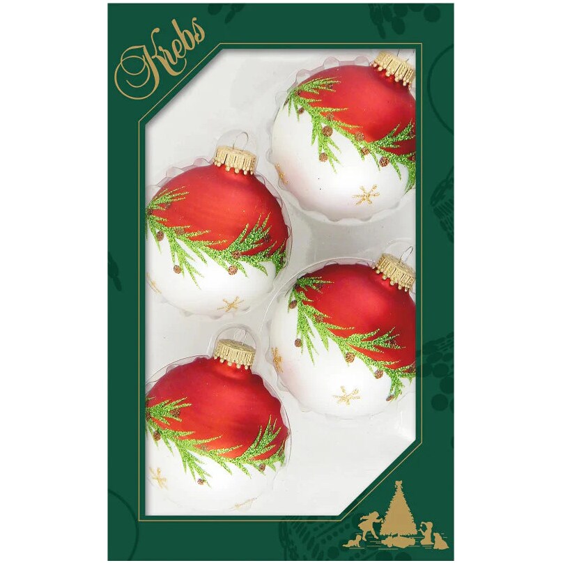 Krebs Glass Ball Ornament - Bi-Color Pine Garland - 4 Pack