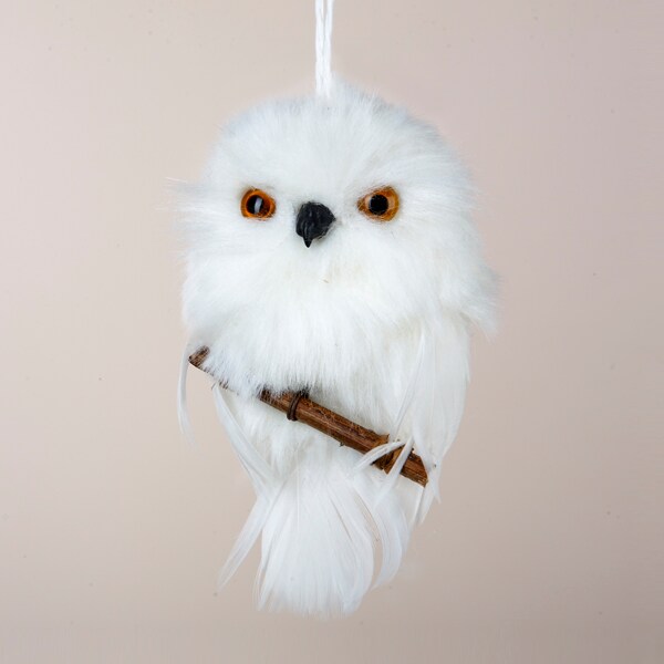 KSA Club Pack of 24 White Snowy Owl Perched on Branch Christmas Ornaments 4"