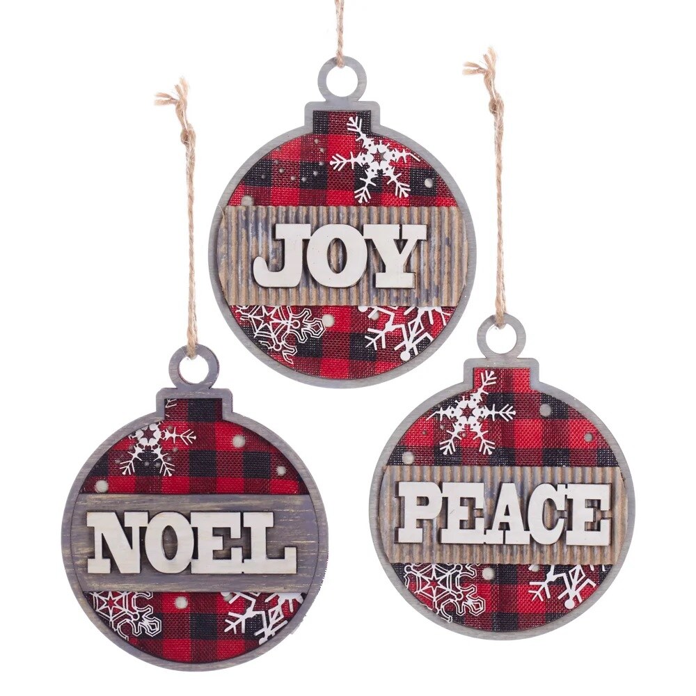 KSA Pack of 24 Wooden Plaid with Statement Christmas Ball Ornaments 5"