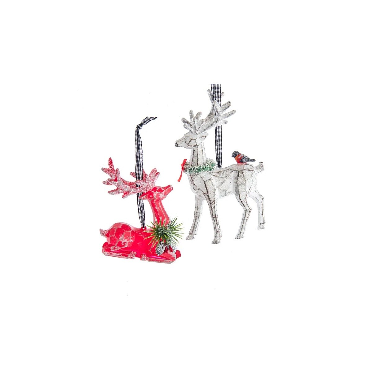 KSA Set of 12 Distressed Deer Christmas Ornaments 6"