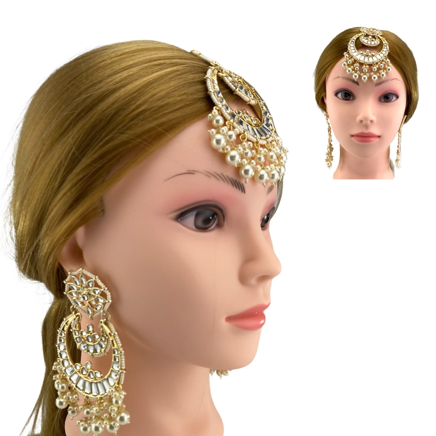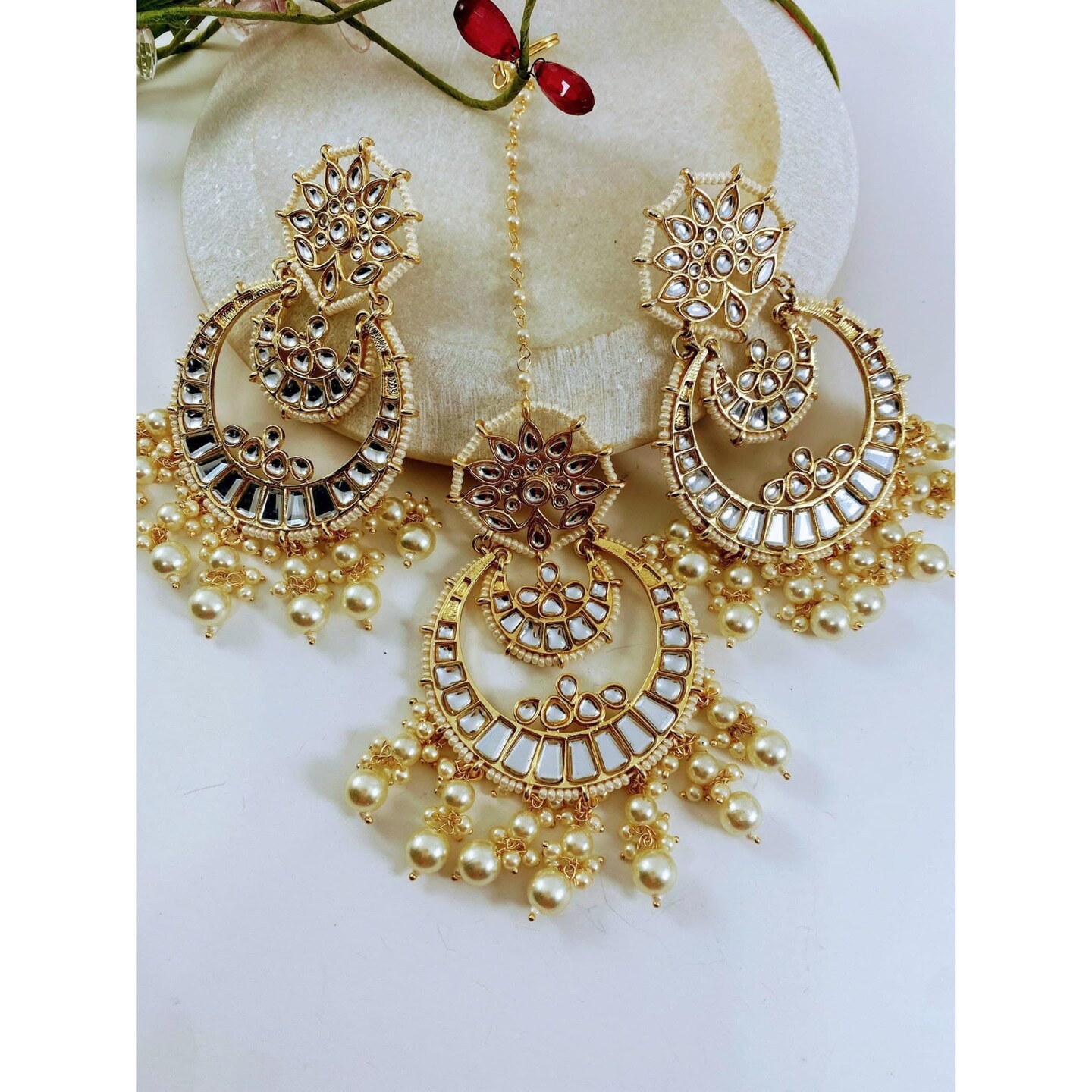 Kundan Chandbalis Set, Indian Jewelry, Pakistani Jewelry Set, Mang Tikka Earing Set, Chandbalis Earrings, Chandbalis, Punjabi Jewelry