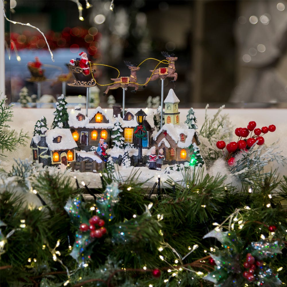 Kurt Adler 12-Inch Battery Operated Musical LED Village with Santa and Deer