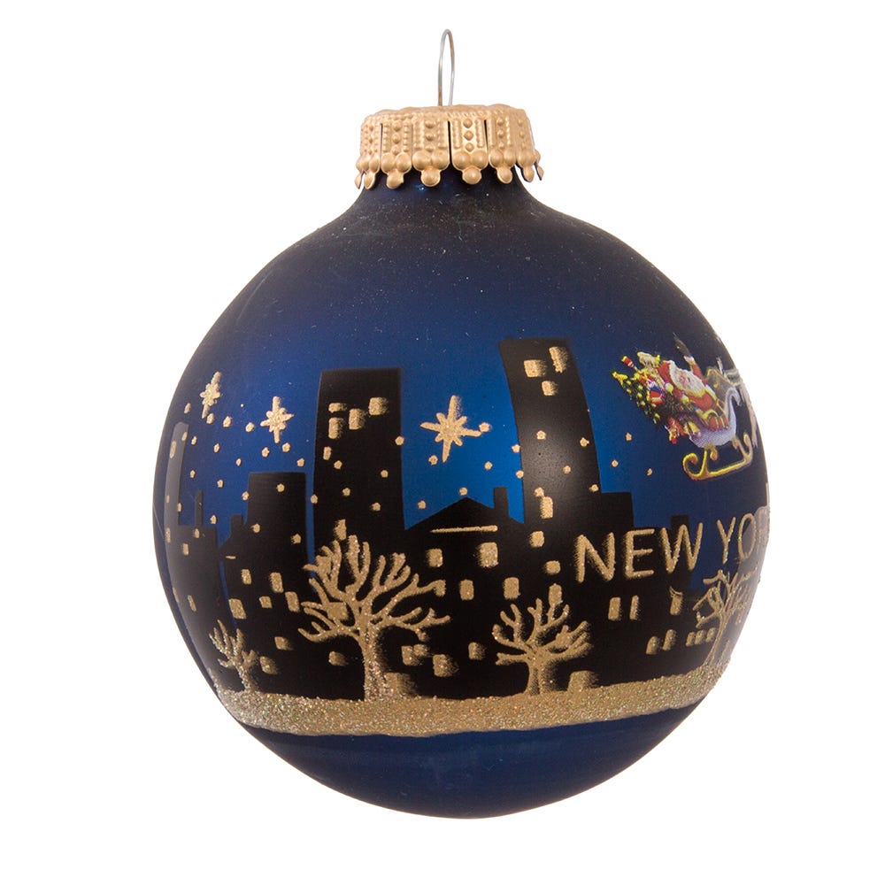 Kurt Adler 60MM NY Santa Skyline Hand Painted Glass Ball Ornament