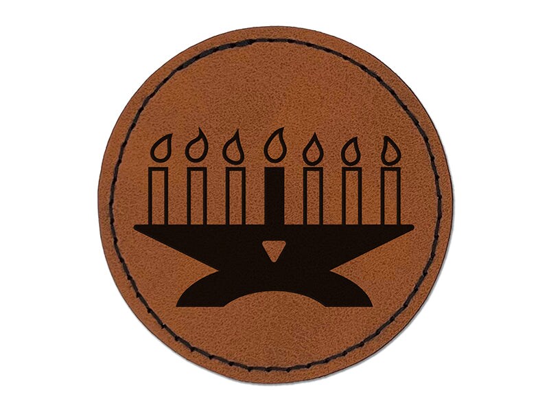 Kwanzaa Kinara with Candles Round Iron-On Engraved Faux Leather Patch Applique - 2.5"