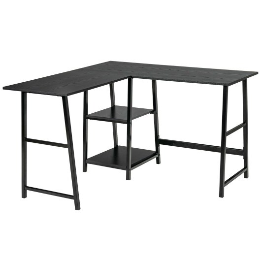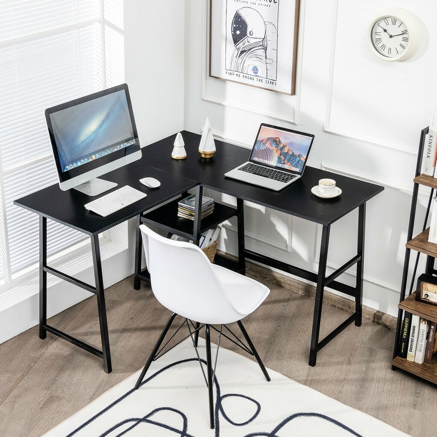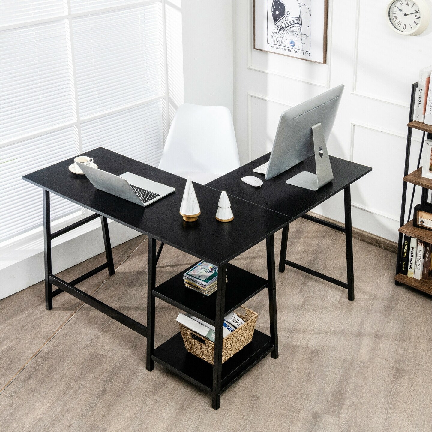L Shaped Corner Computer Desk with Storage Shelves and Heavy Duty Metal Frame