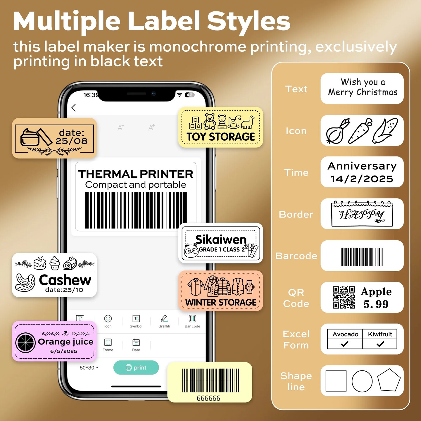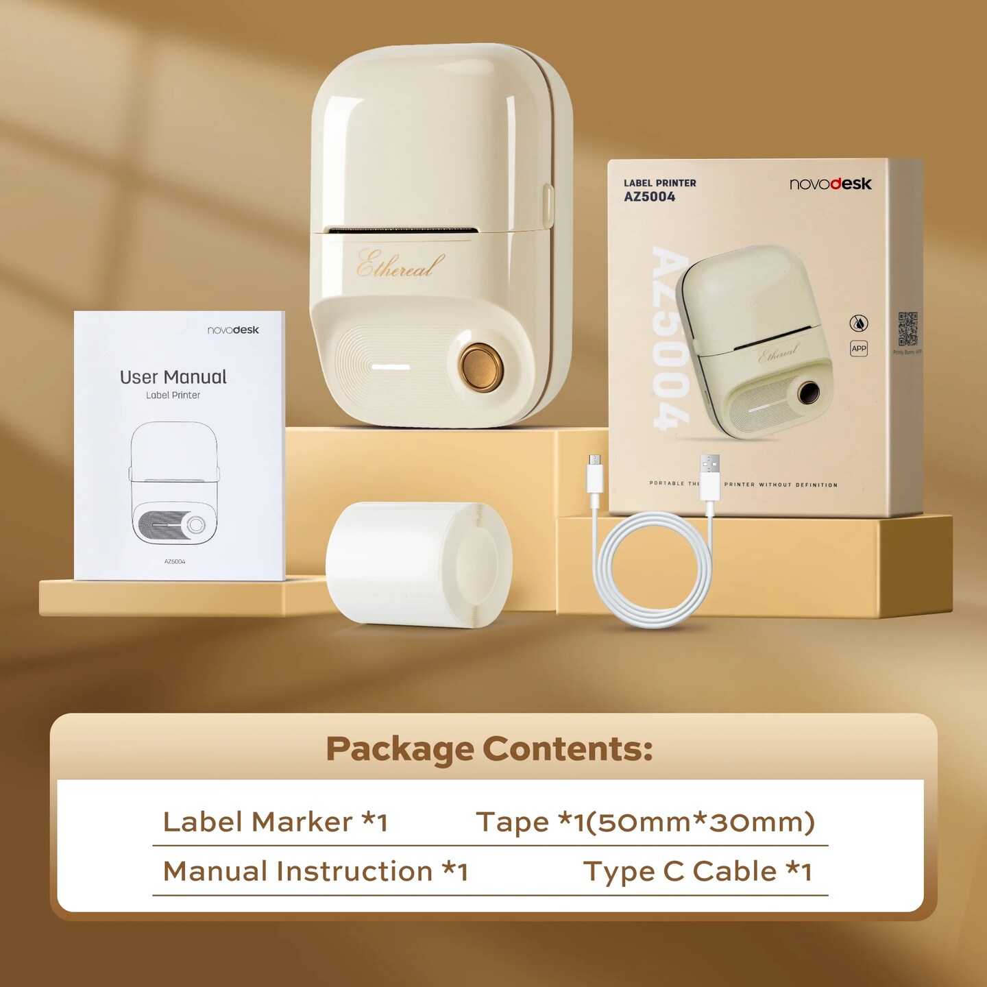 Label Maker Machine, 2 inches Portable Bluetooth Retro Label Printer with Tape, Inkless Label Maker Handheld (Milky White)
