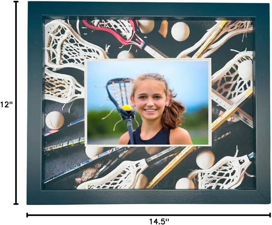 Lacrosse Picture Frame – 5x7 Photo Display with Lacrosse-Themed Mat | 12x14.5 Frame for Wall or Tabletop