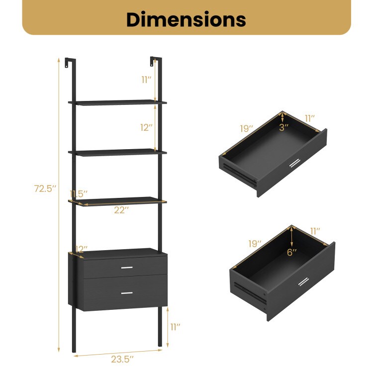 Ladder Shelf 6-Tier Bookcase with Drawers for Home or Office
