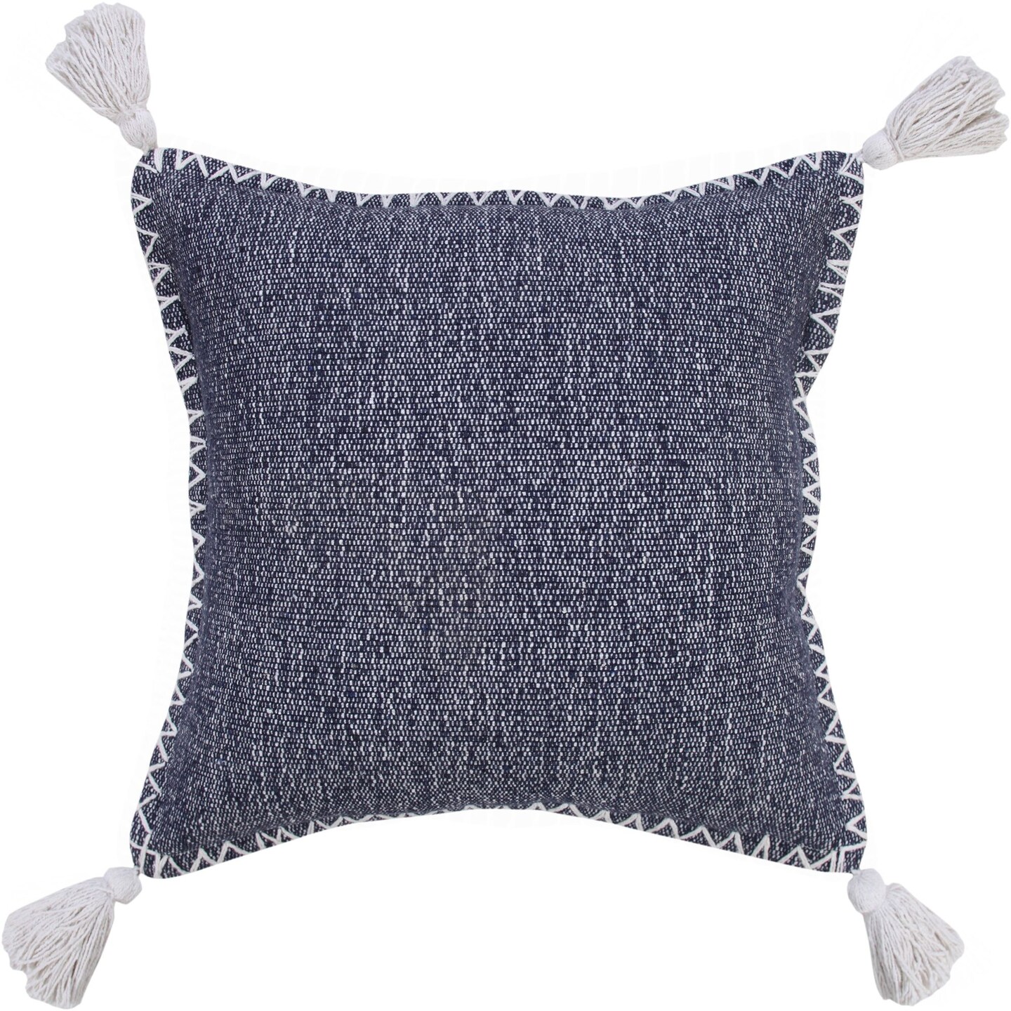Laddha Home Designs 20" Blue and White Stonewash Embroidered Edge Square Throw Pillow with Tassels
