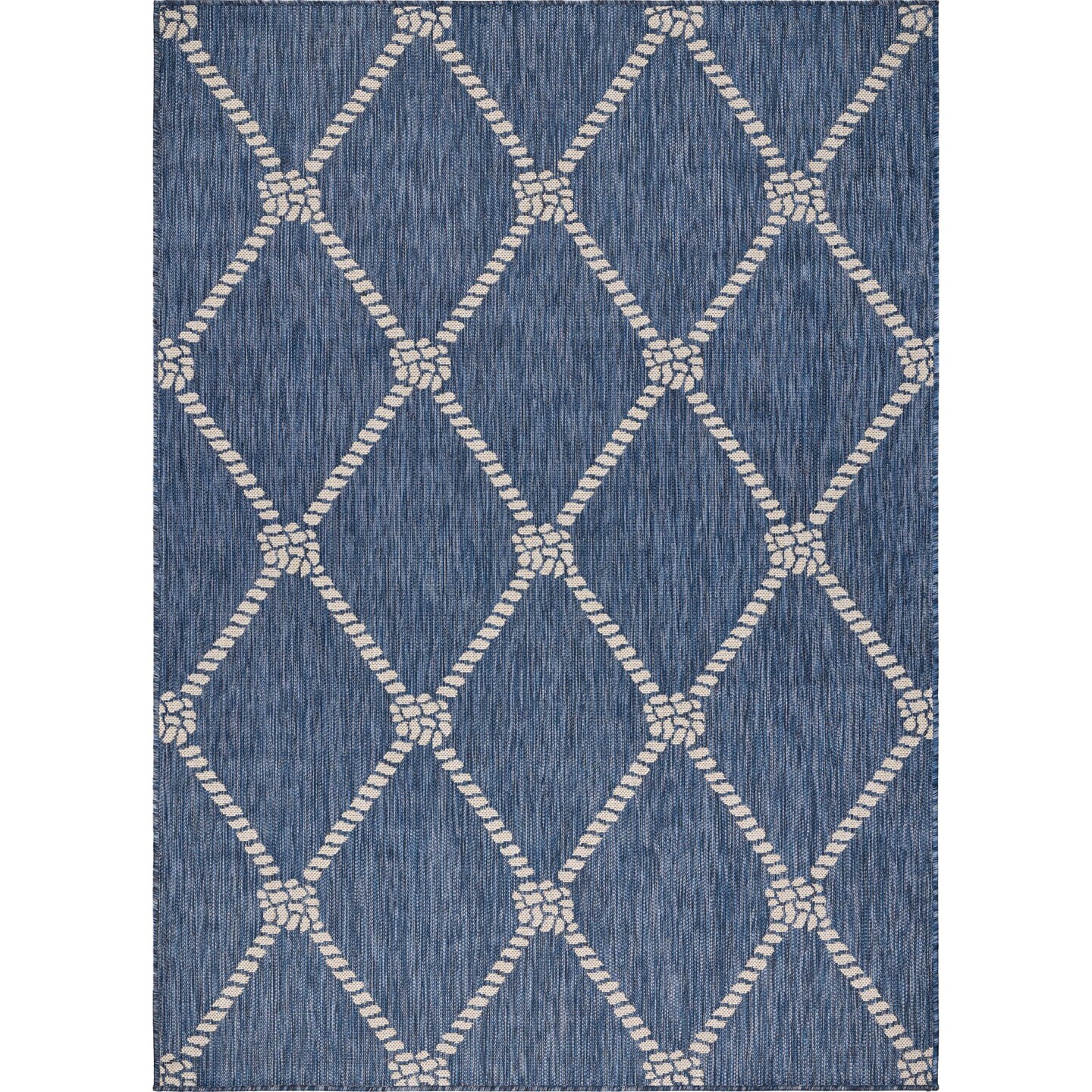 Laddha Home Designs 3' x 5' Navy and Beige Nautical Knot Rectangular Outdoor Area Throw Rug