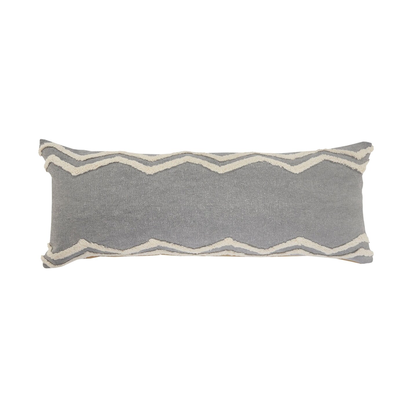 Laddha Home Designs 36" Gray and White Handmade Chevron Bordered Rectangular Lumbar Pillow