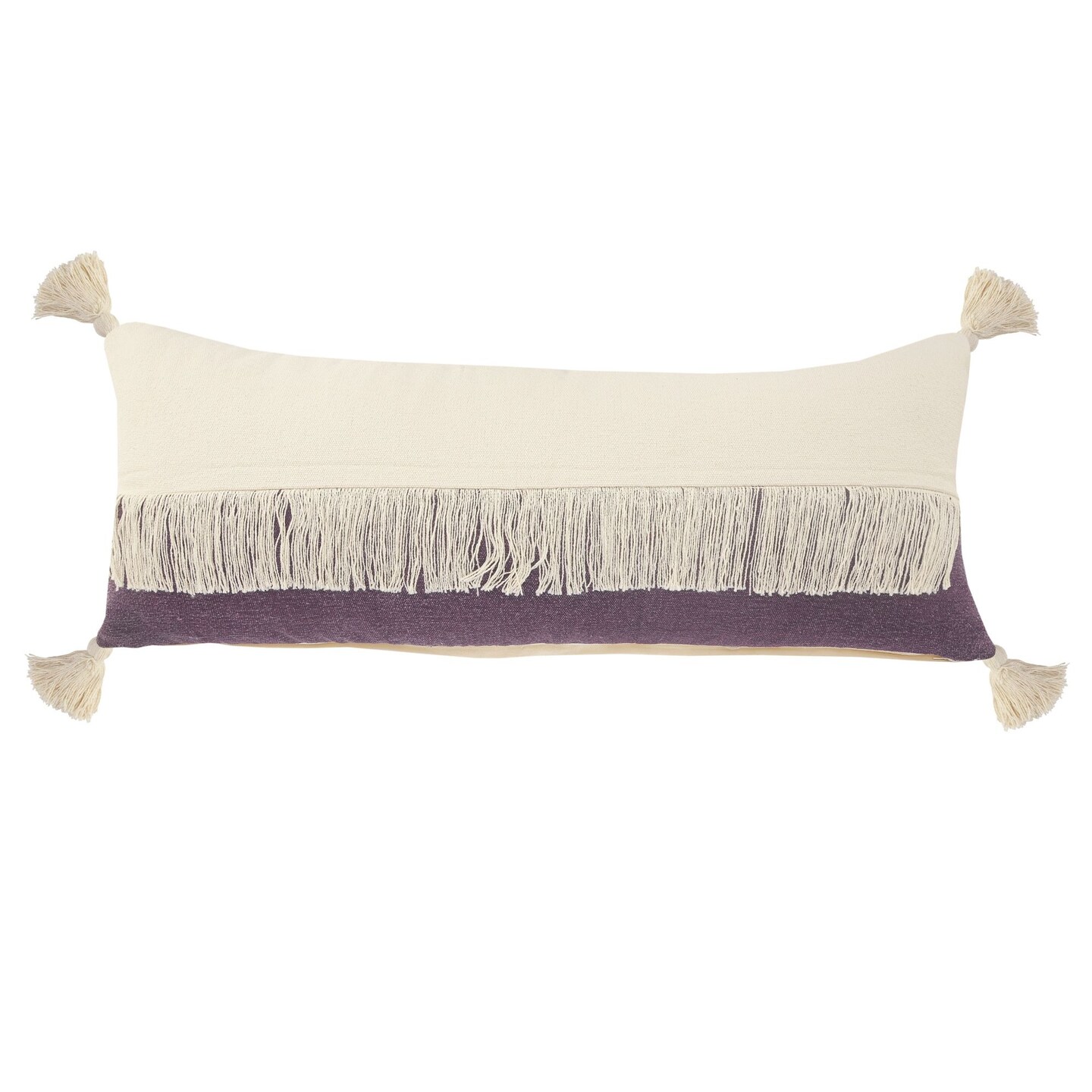 Laddha Home Designs 36" Purple and White Fringe Color Block Lumbar Throw Pillow