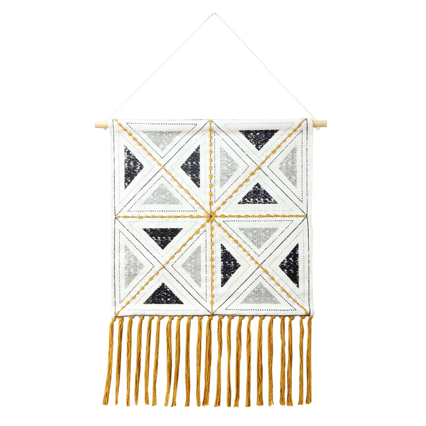 Laddha Home Designs Embroidered Diamond Geometric Woven Cotton Wall Hanging Tapestry 33" x 21.5"
