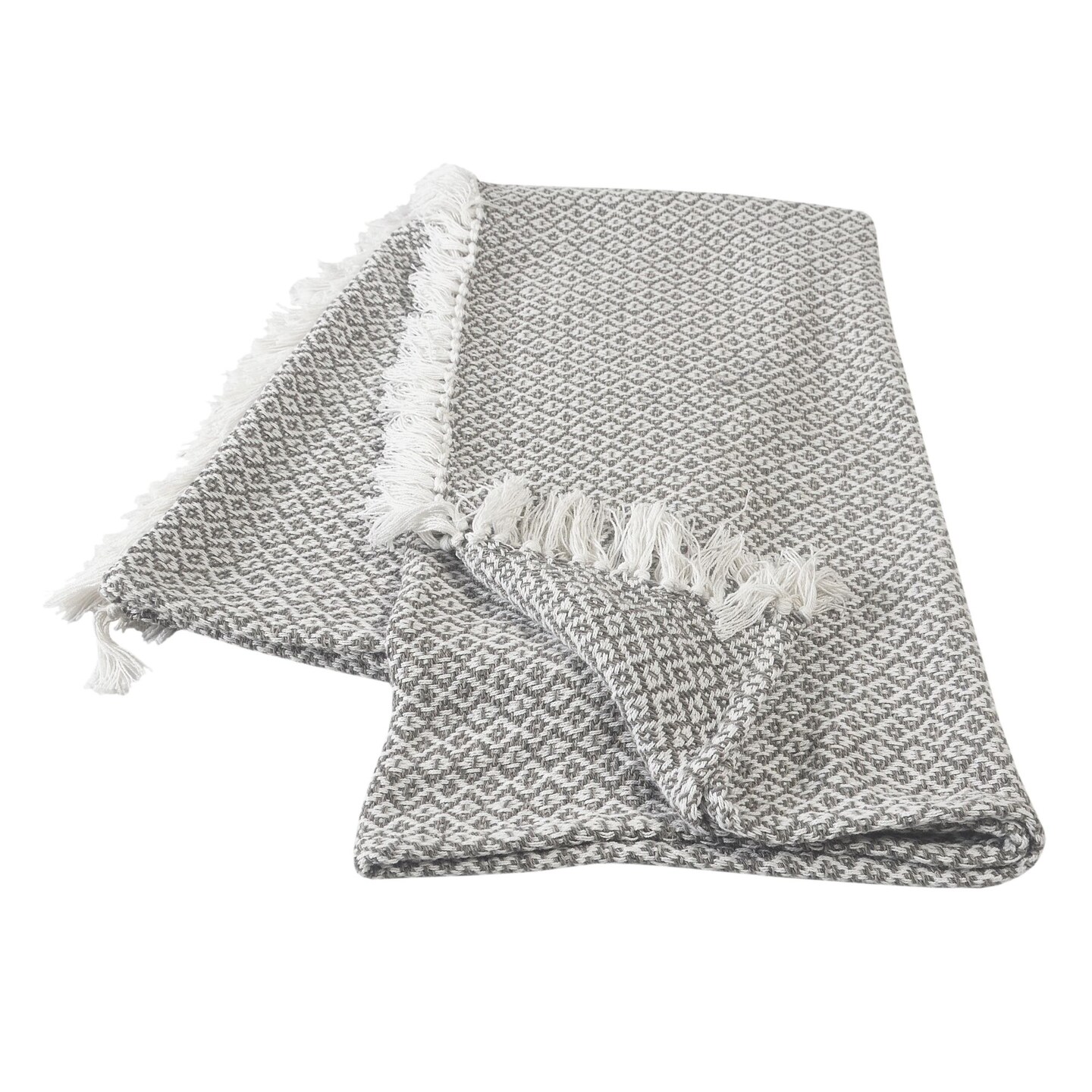 Laddha Home Designs Gray and Ivory Diamond Fringed Throw Blanket 50" x 60"