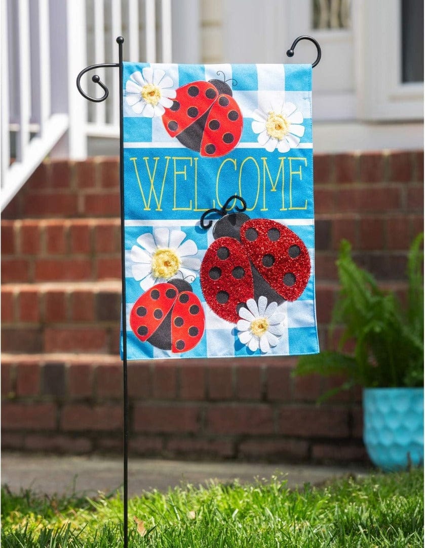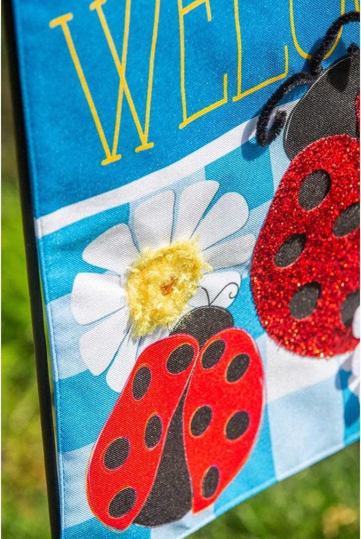 Ladybug Plaid Welcome Garden Flag 2 Sided