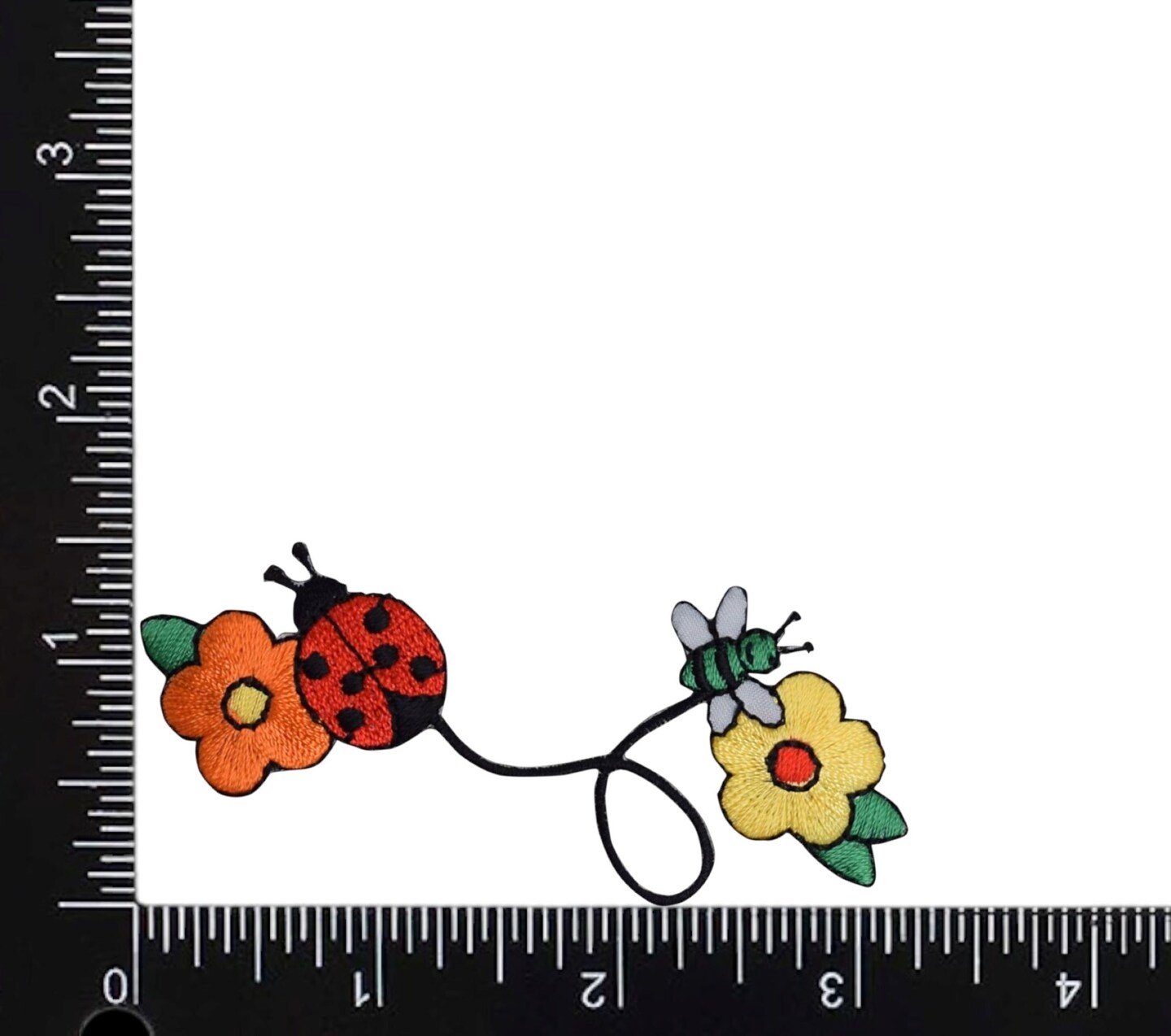 Ladybug with Bee and Daisy Flowers, Embroidered, Iron on Patch