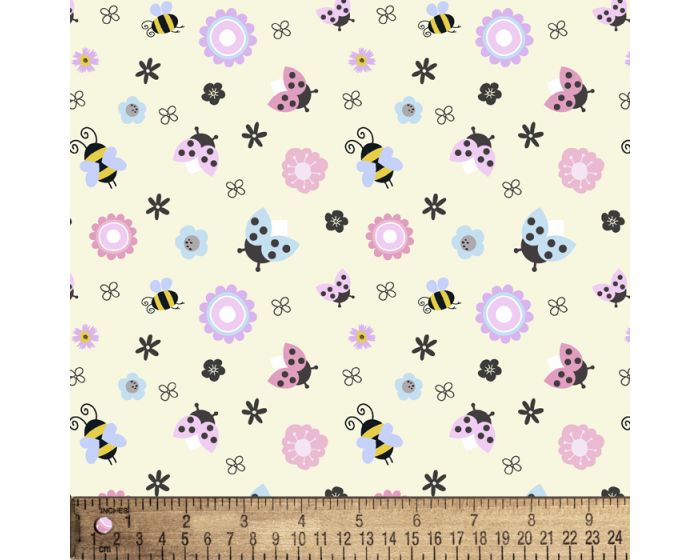 Ladybugs Bumblebees Digital Cotton Print Fabric | By the Yard | Sewing and Crafting | 44 inches wide