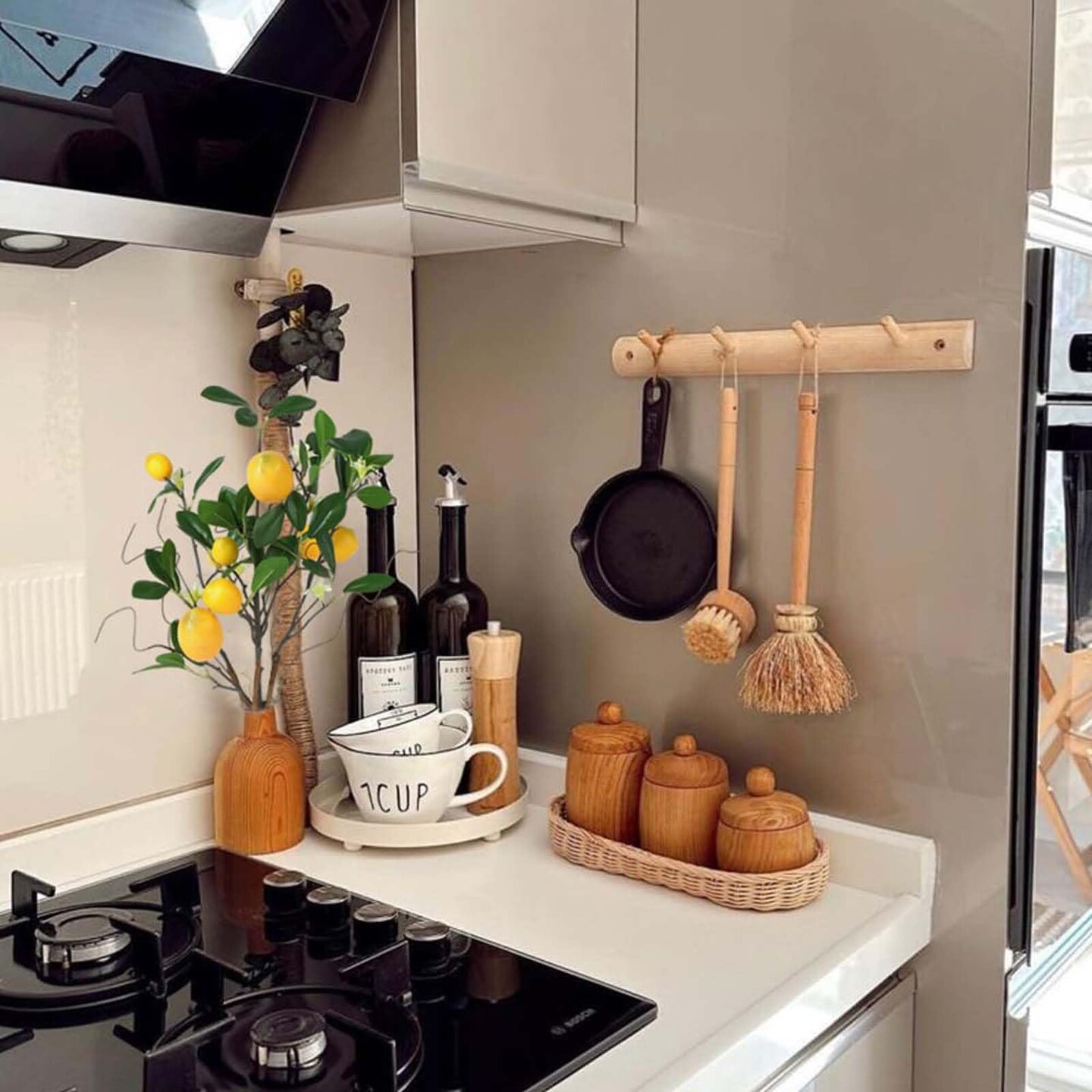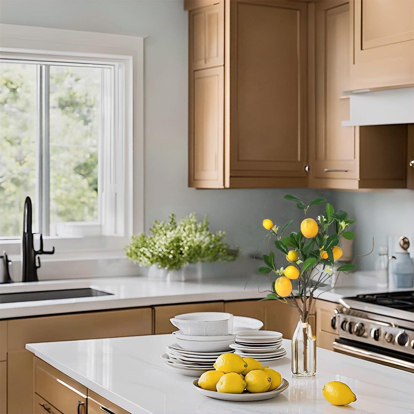 Laelfe Artificial Lemons Branches, 8 Head Faux Lemons with Stem Fake Lemon Themed for Kitchen Decoration Party Farmhouse Decor (Yellow)