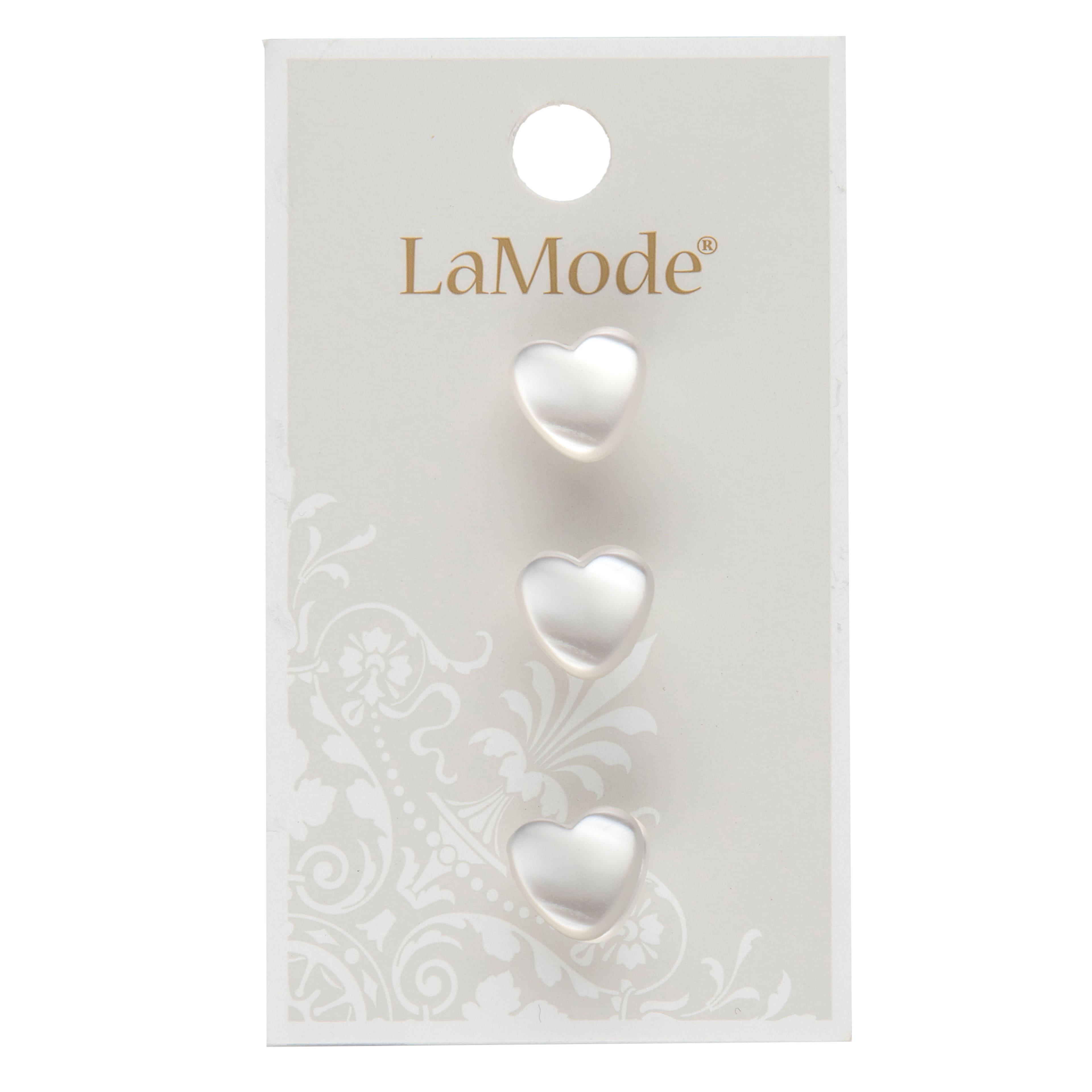LaMode 7/16" Pearlescent White Heart Buttons, 3ct.