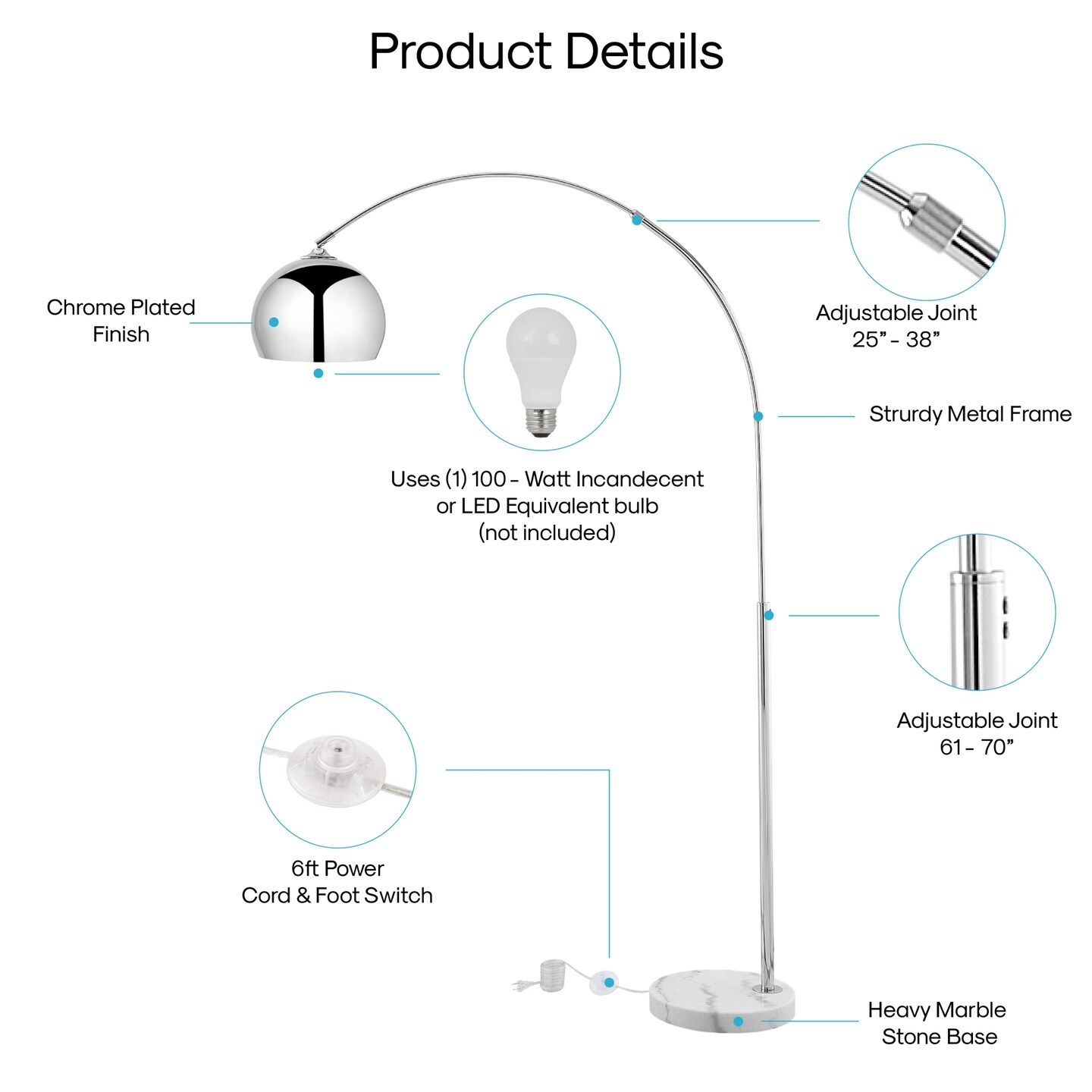 Landrie Floor Lamp 6ft Power Cord, Marble Stone Base