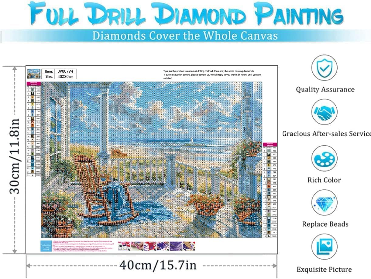 Landscape Diamond Art Kits for Adults,5D Beach Diamond Painting DIY Animal Diamond Art Diamond Painting Kit for Adult,Round Full Drill Diamonds, Diamond Art Kits for Home Decor-12x16inch