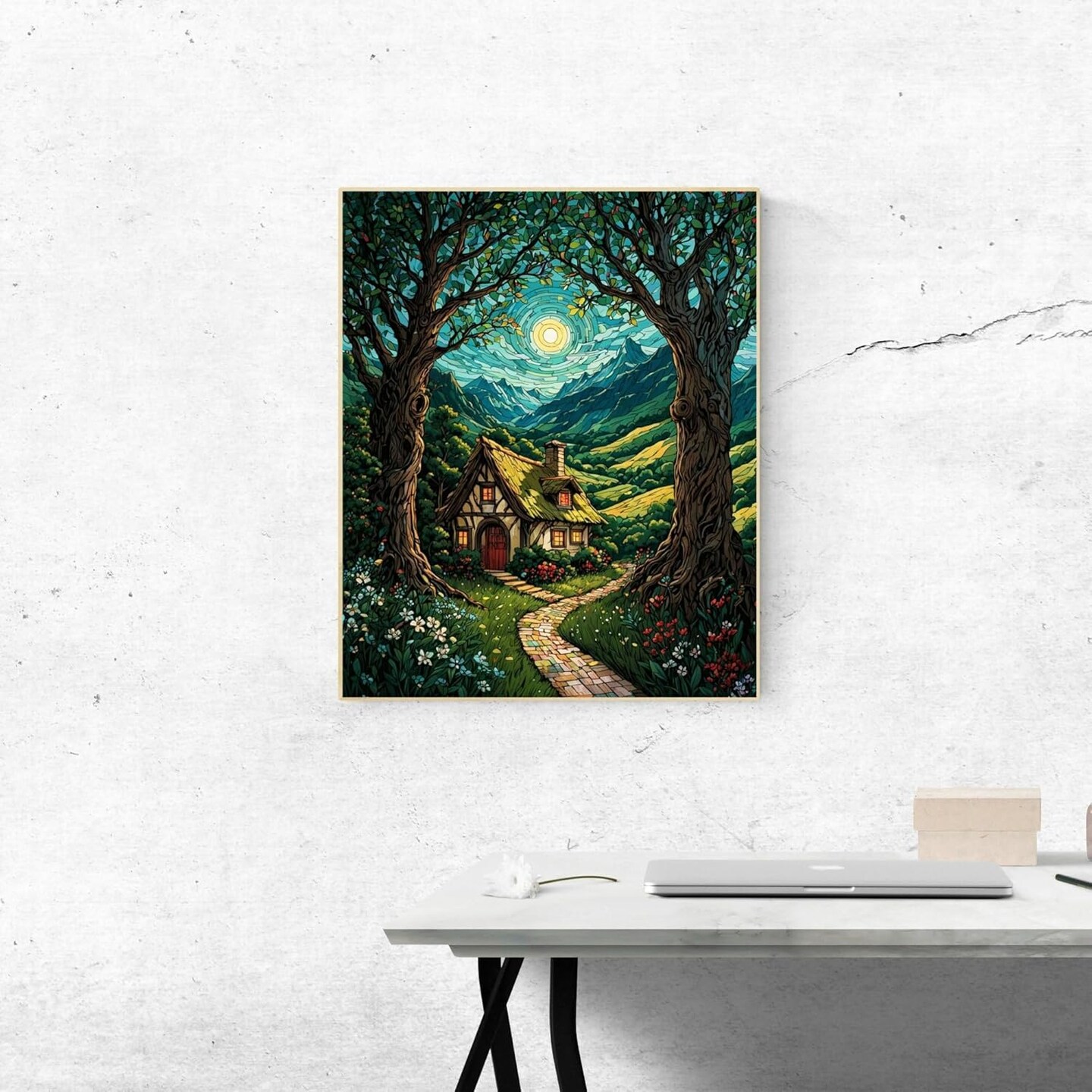 Landscape Paint by Numbers Kit for Adults Beginner Moon Forest Adult Paint by Number Kits On Canvas Adults' Paint-by-Number Kits DIY Oil Painting Kits for Gift Wall Decor 16x20 Inch