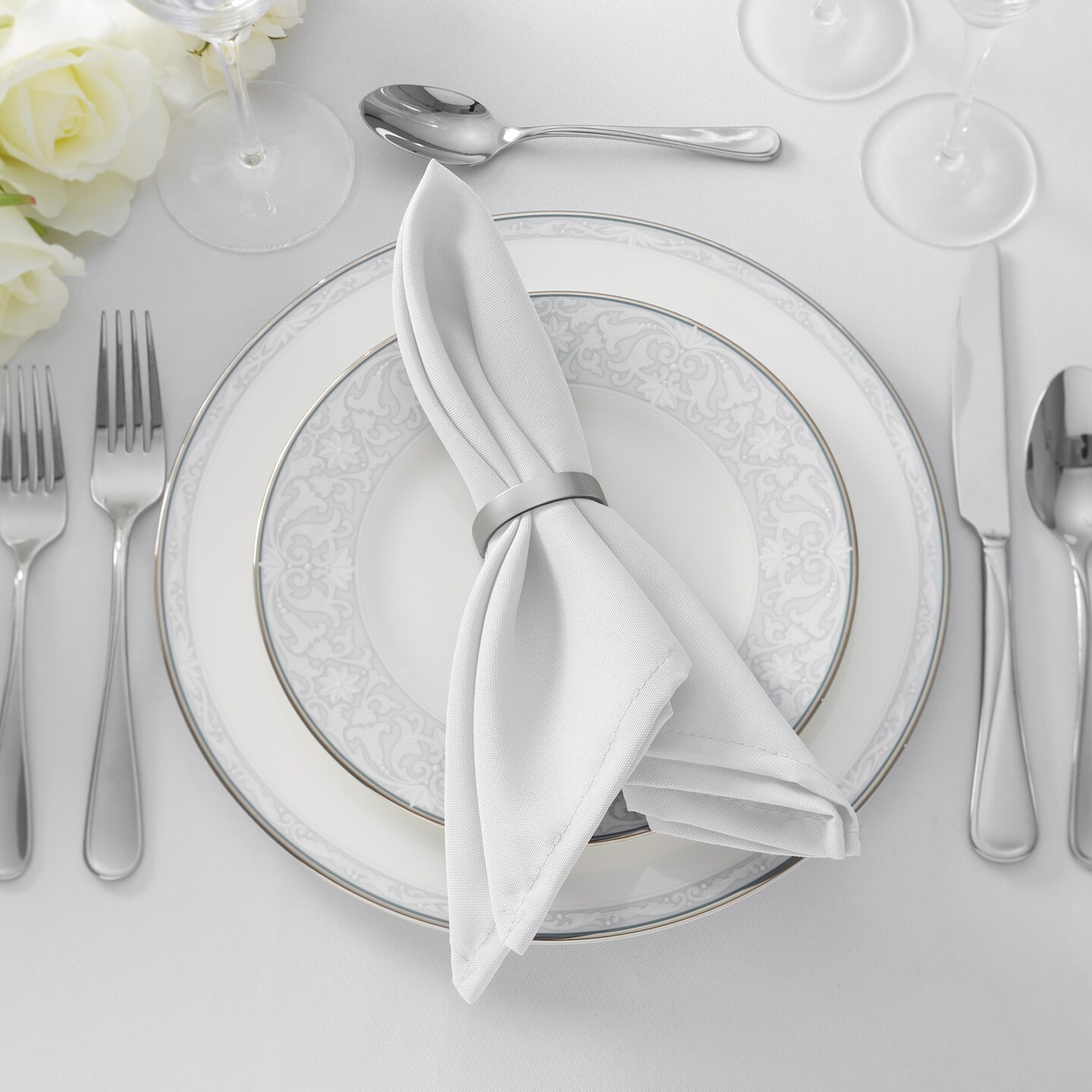 Lann's Linens Set of 144 Cloth Dinner Napkins, 17-inch Polyester Napkins, Washable and Reusable Fabric for Weddings, Hotels, Restaurants