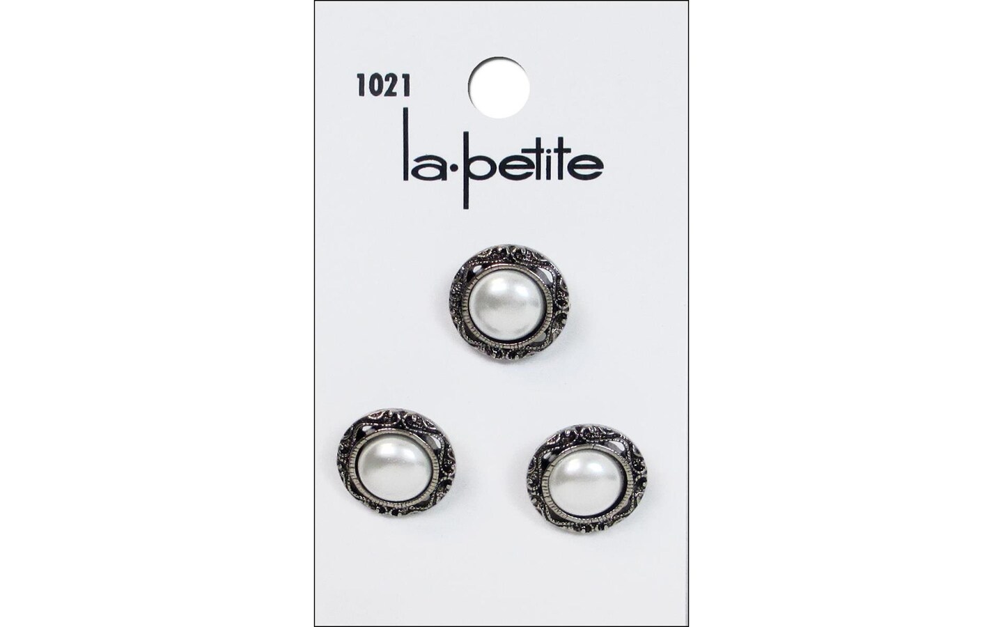 Lapetite Buttons 5/8" Shank Ant Silver/White 3Pc