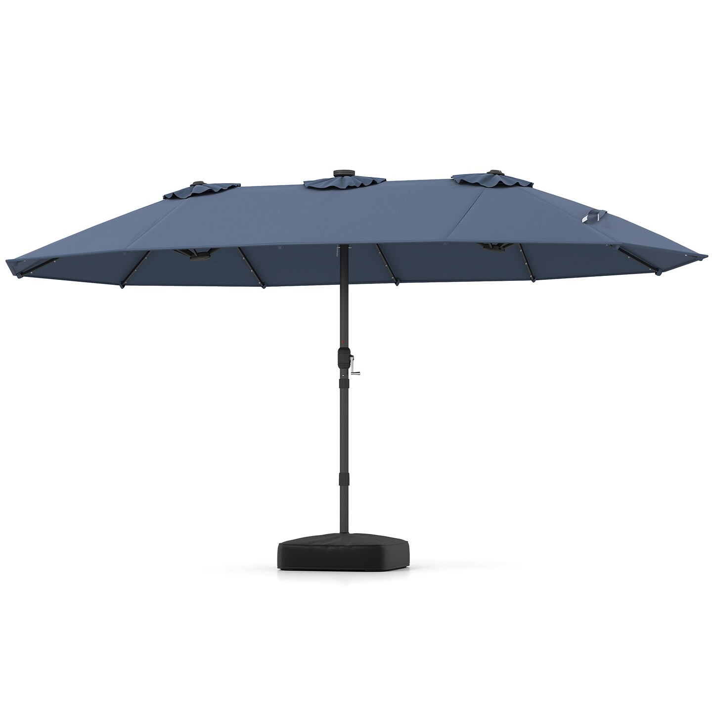 Large 15 FT Twin Outdoor Patio Umbrella with 48 Built-In Solar LED Lights