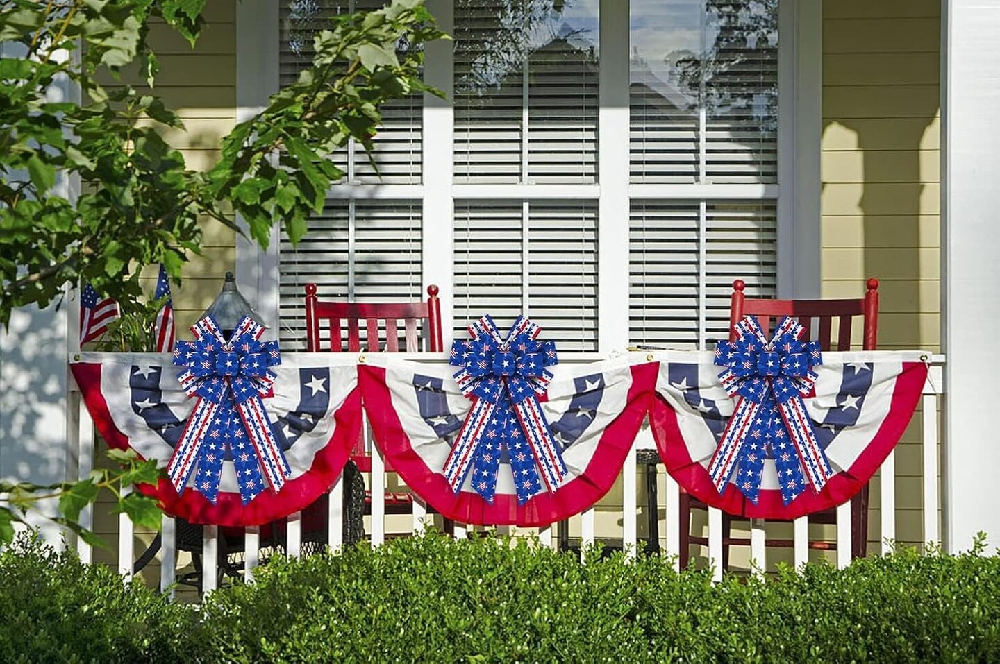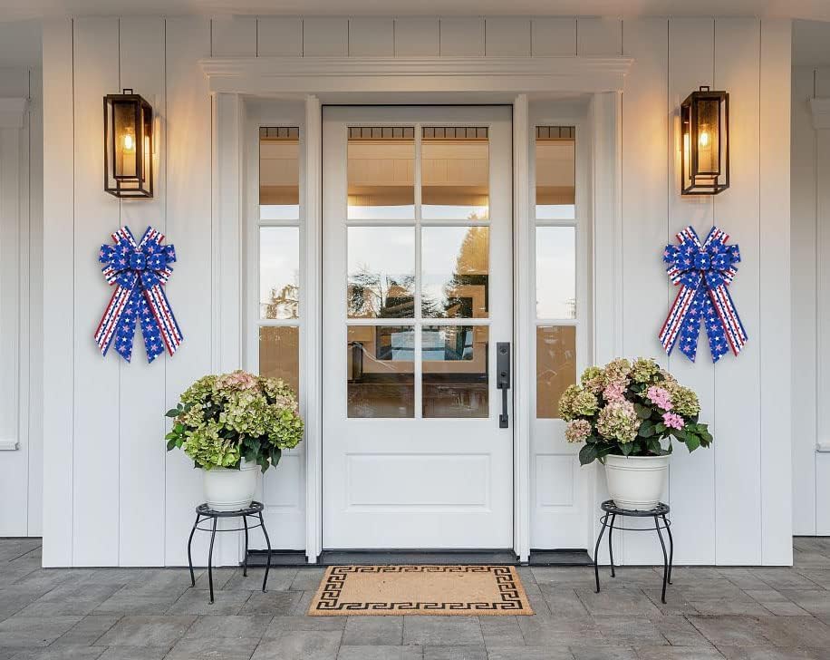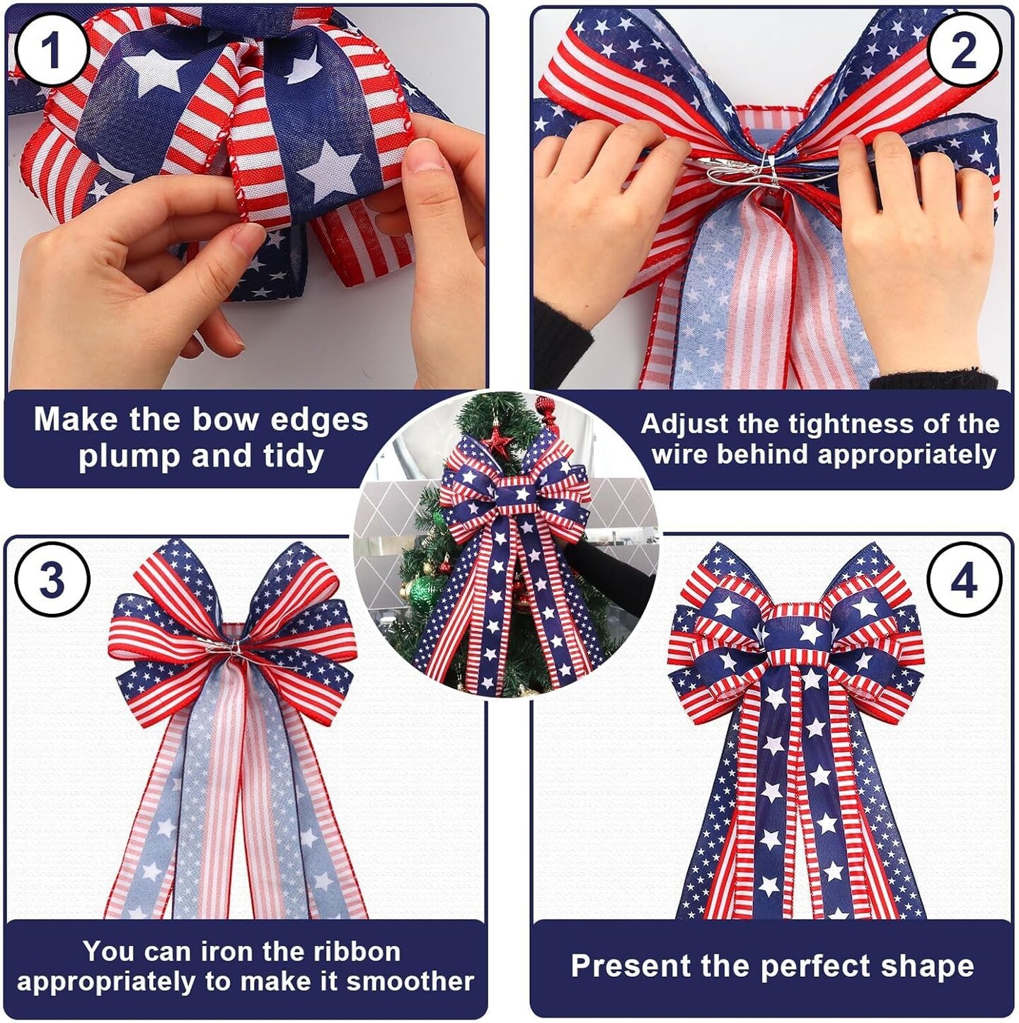 Large 4th of July Patriotic Wreath Bow – Red, White & Blue Stars and Stripes Burlap Bow, Memorial Day & Independence Day Tree Topper for Front Door, Indoor/Outdoor Holiday Decorations