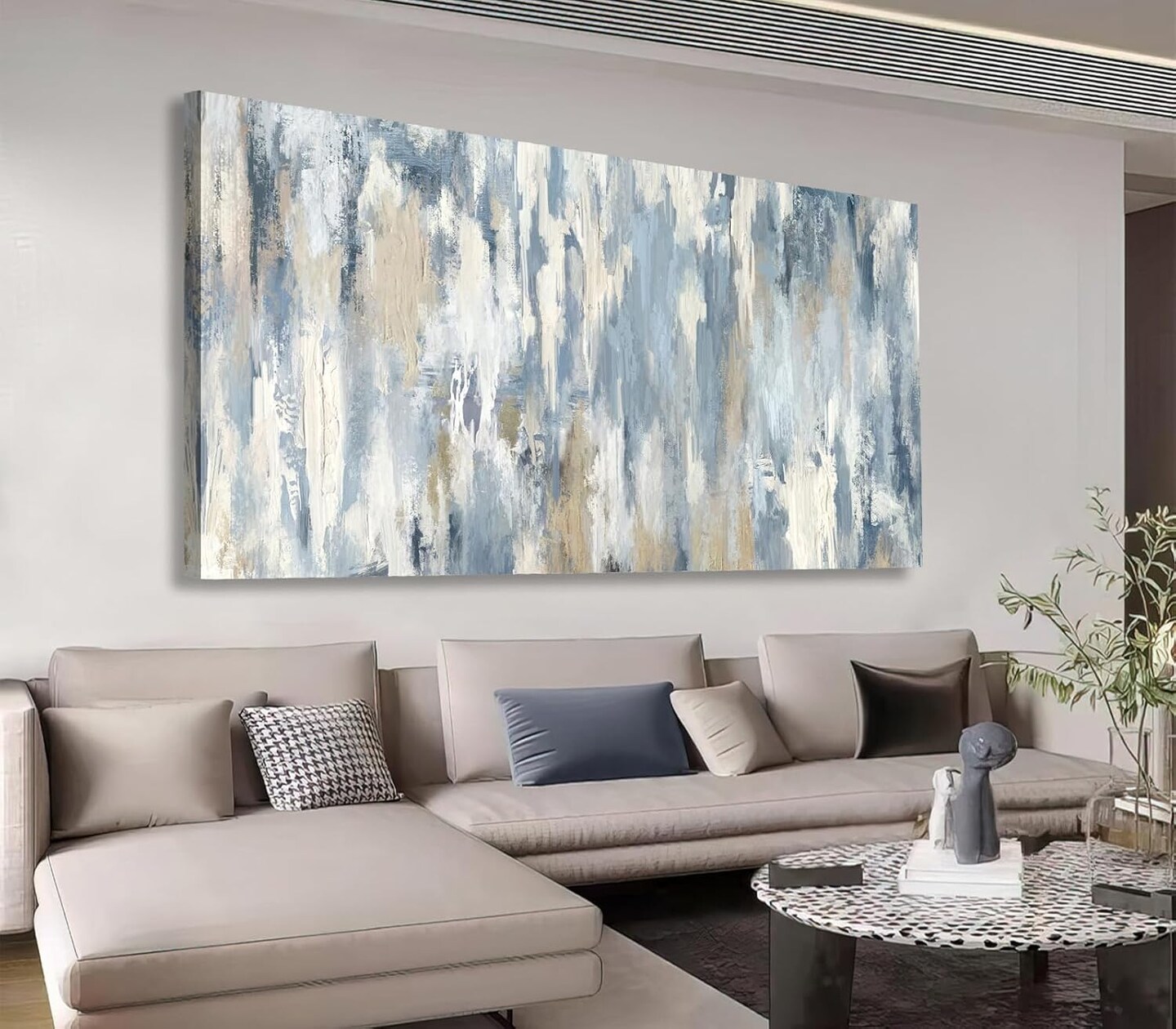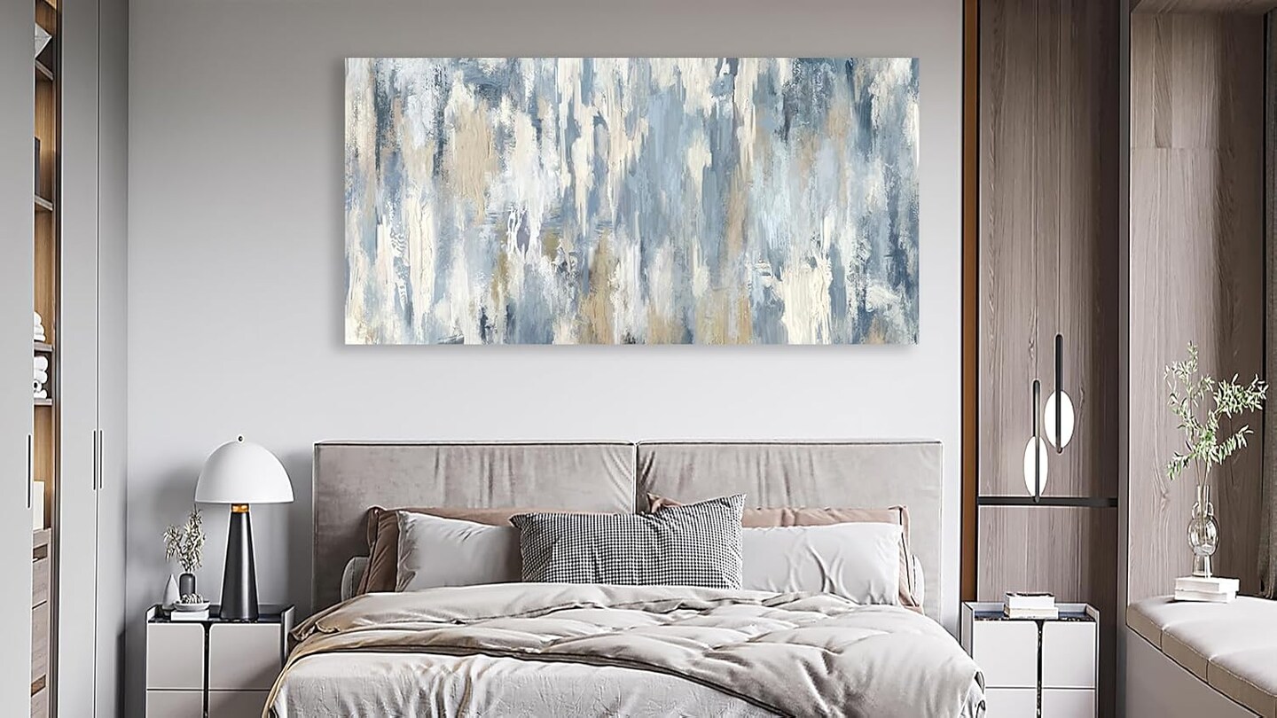 Large Abstract Wall Art - Gray Blue Beige Canvas Pictures for Living Room Contemporary Painting Prints Decor Modern Graffiti Artwork Wall Art for Bedroom Home Office Decoration 20" X 40"