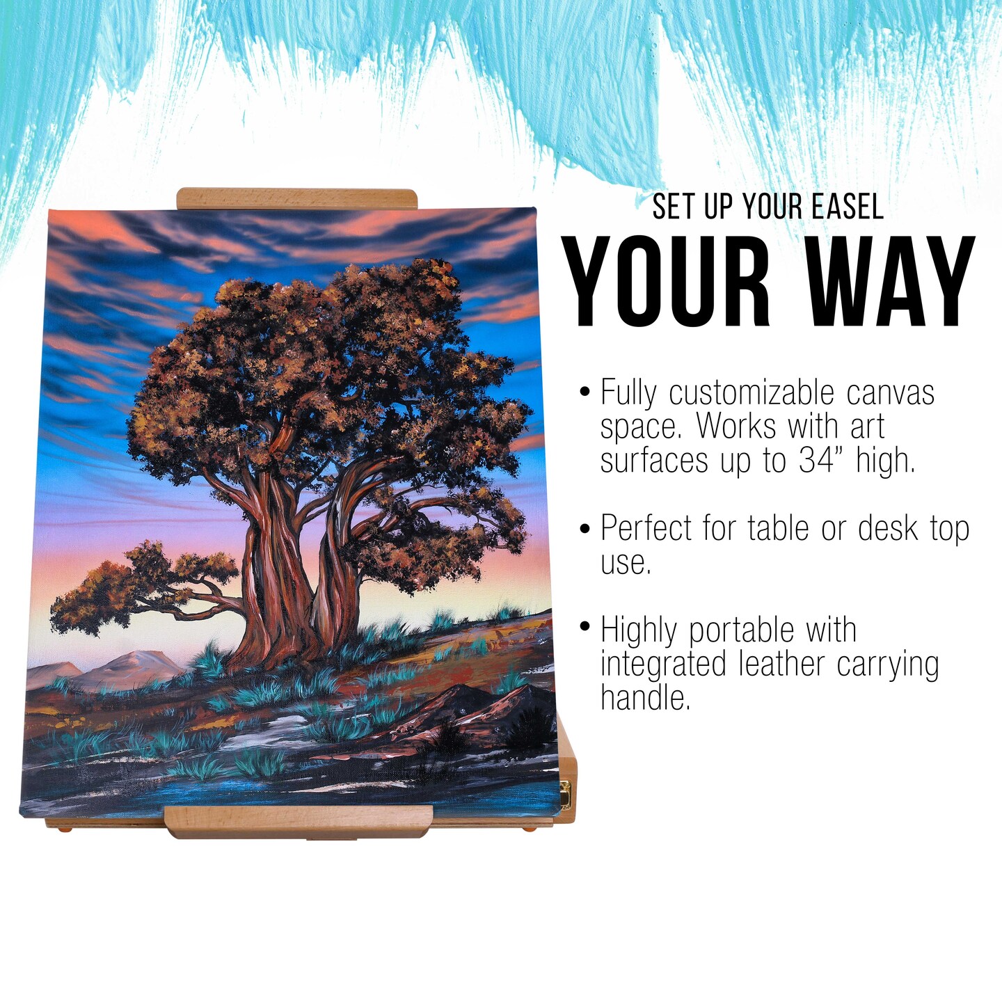 Large Adjustable Wooden Desktop Easel with Storage - Portable Sketchbox, Tabletop Easels for Painting, Drawing & Art Supplies, Premium Beechwood