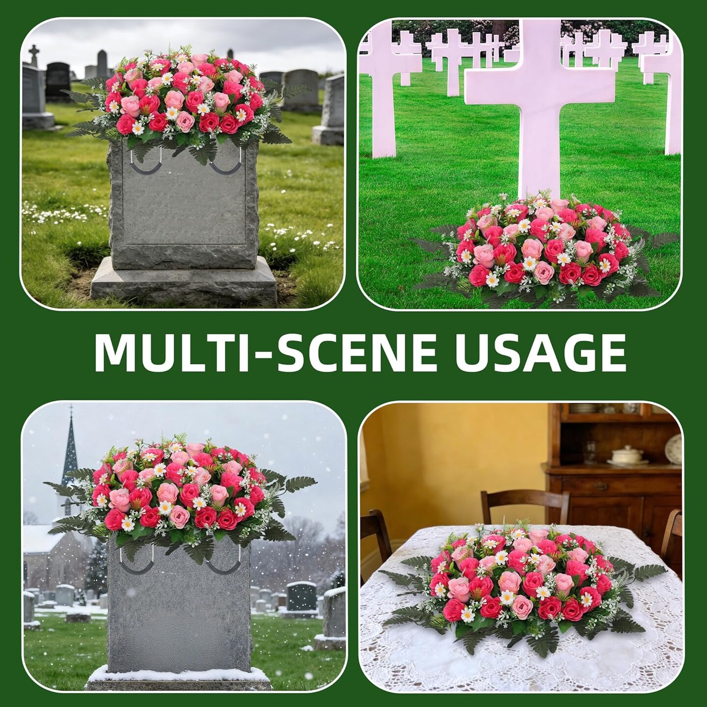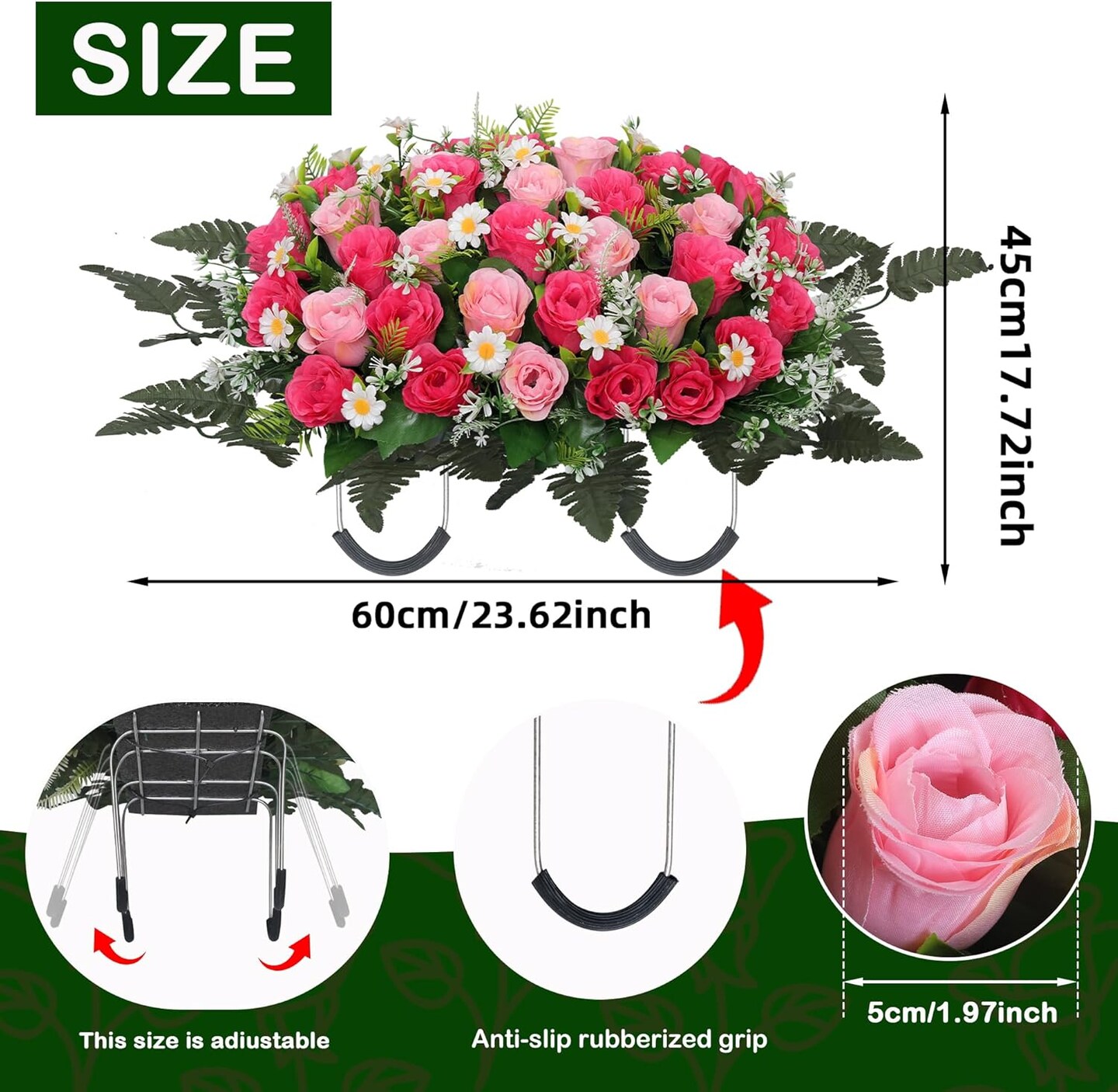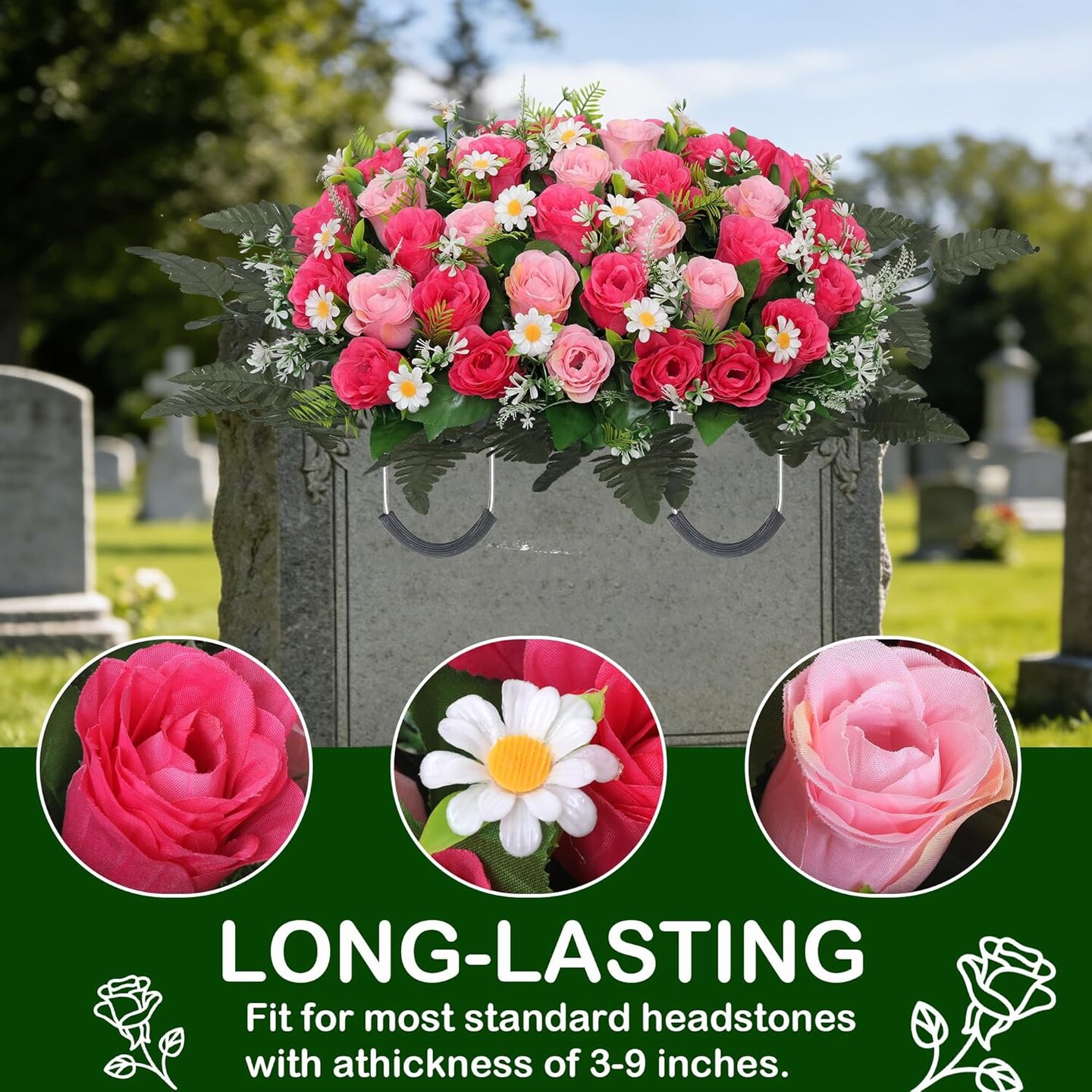 Large Artificial Cemetery Flower Saddle – Silk Rose & Daisy Arrangement for Grave and Headstone (Pink)