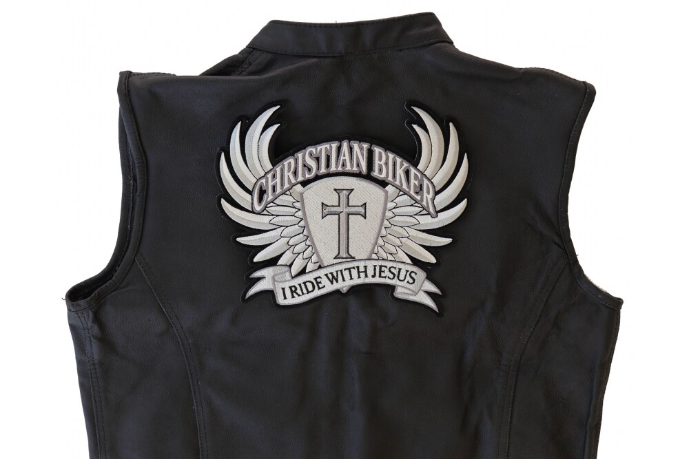 Large Back Patch, Embroidered Patch (Iron-On or Sew-On), Christian Biker I Ride With Jesus Wings Cross Large Back Patch, 10" x 8.5"