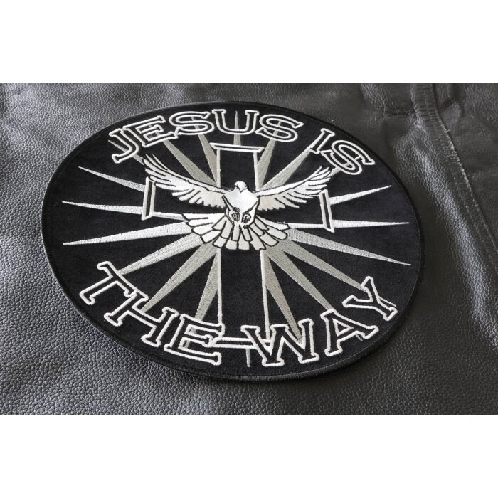 Large Back Patch, Embroidered Patch (Iron-On or Sew-On), Jesus Is The Way Cross Dove Sunburst Christian Back Patch, 9" Diameter
