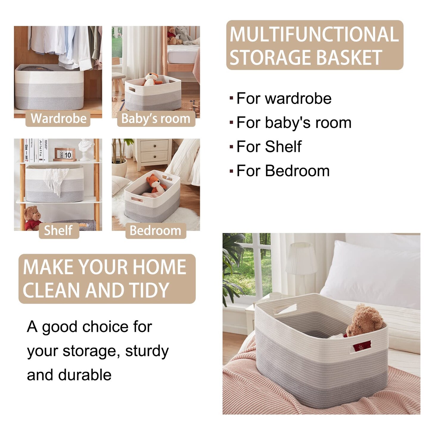 Large Blanket Basket, 22”x17”x12” Rectangle Woven Baskets, Nursery Blanket Storage Living Room, Toy Storage With Handle, Large Baskets for Organizing-Gradient Grey