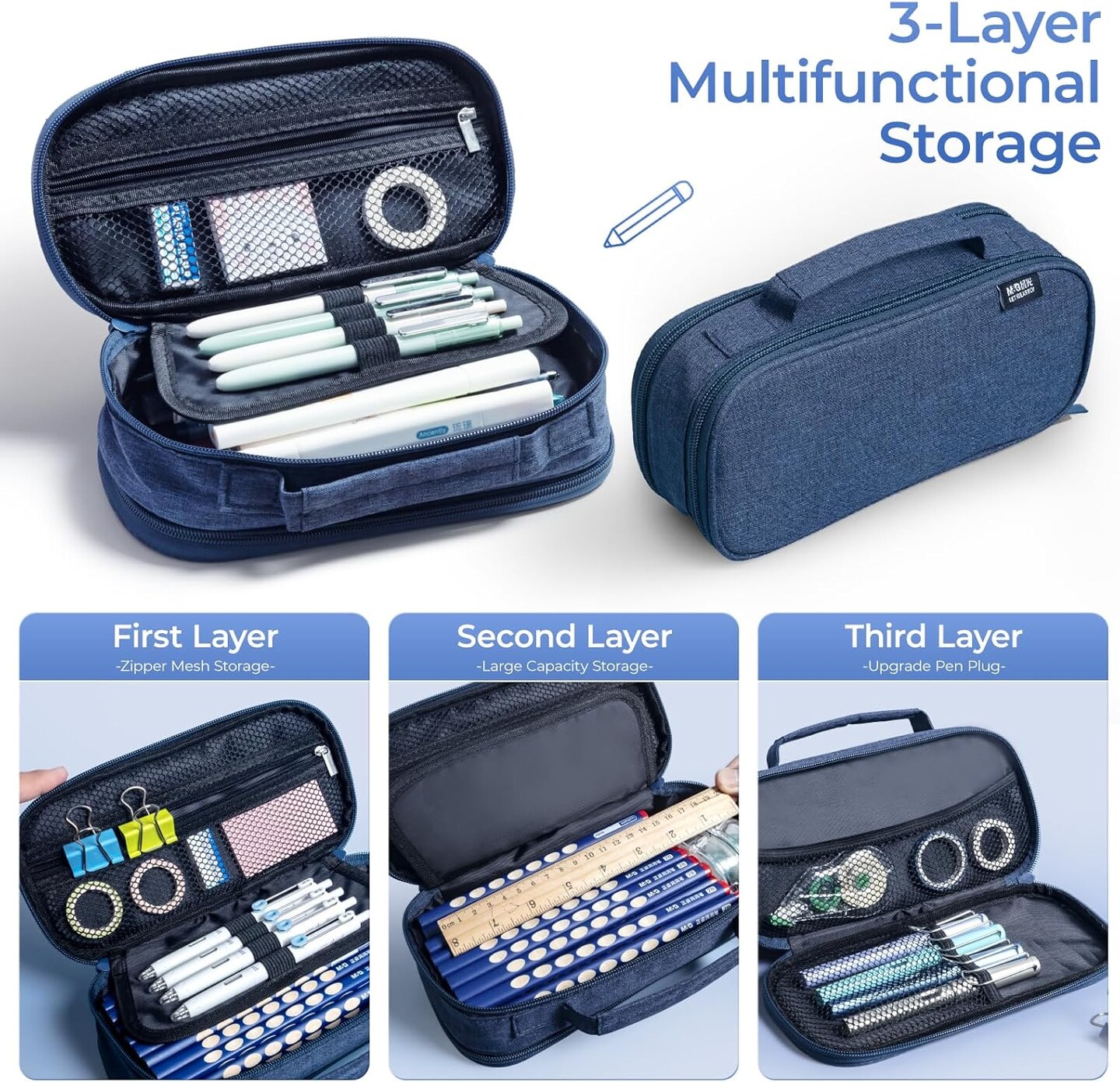 Large Capacity Pencil Pouch Multi-Slot Pencil Case Organizer