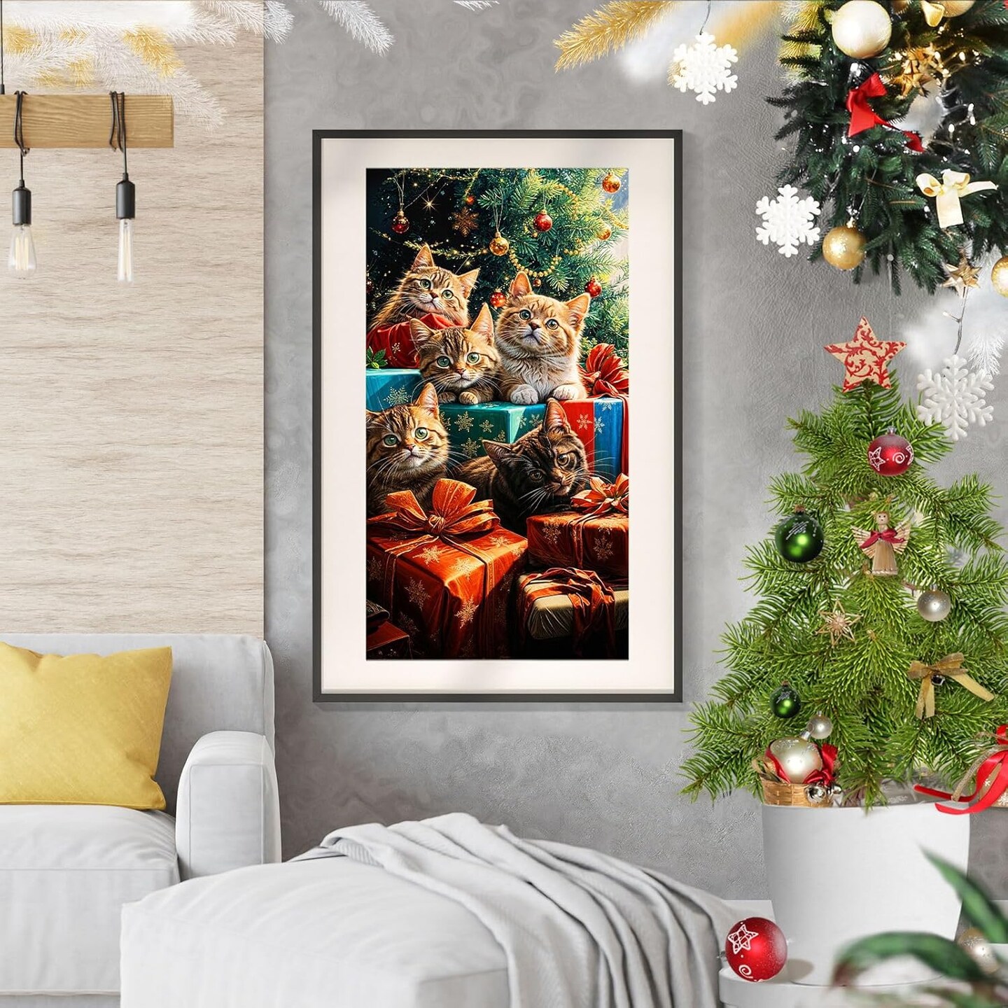 Large Christmas Cat Diamond Art Kits, DIY 5D Christmas Tree Diamond Painting,(15.7"x 27.5")