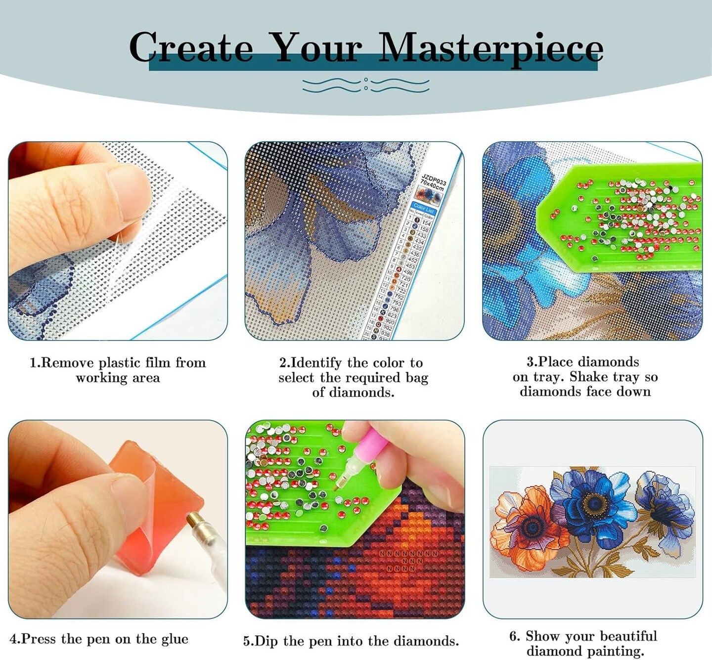 Large Diamond Art Kits for Adults - 5D Flowers Diamond Painting Kits for Adults, DIY Full Drill Large Flower Diamond Art Painting, Floral Gem Art Kits