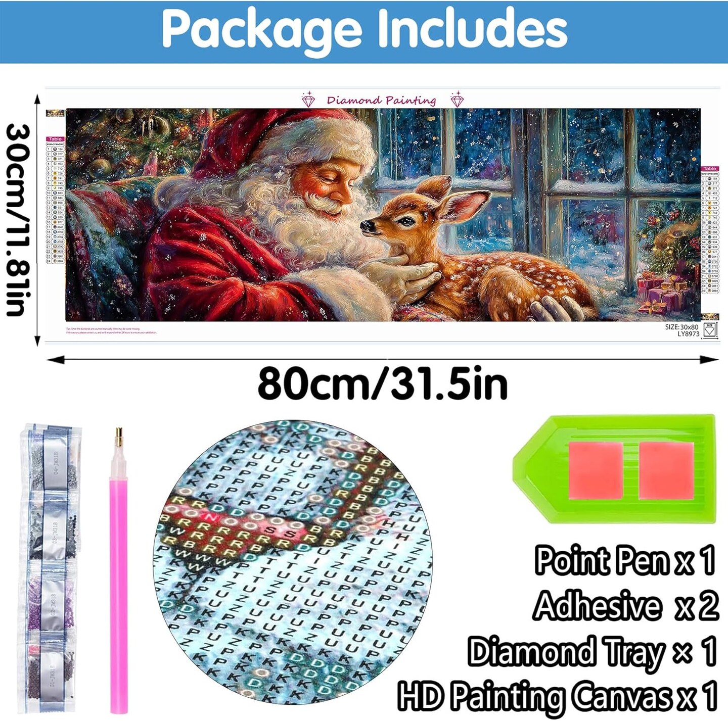 Large Diamond Art Kits for Adults Christmas, 30x80cm/12x31.5inch Full Drill Round Rhinestone Big Diamond Painting Kit Santa Claus, DIY Cross Stitch Embroidery Canvas for Crafts Home Wall Decor