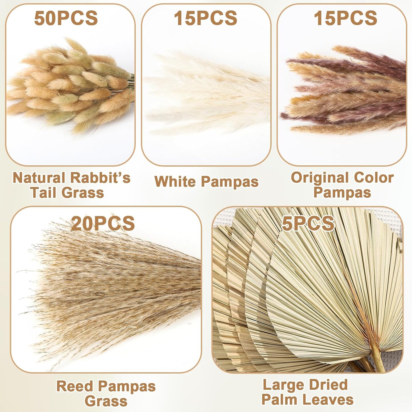 Large Dried Palm Spears Bunny Tails Pampas Reed Grass(Muliticolor)