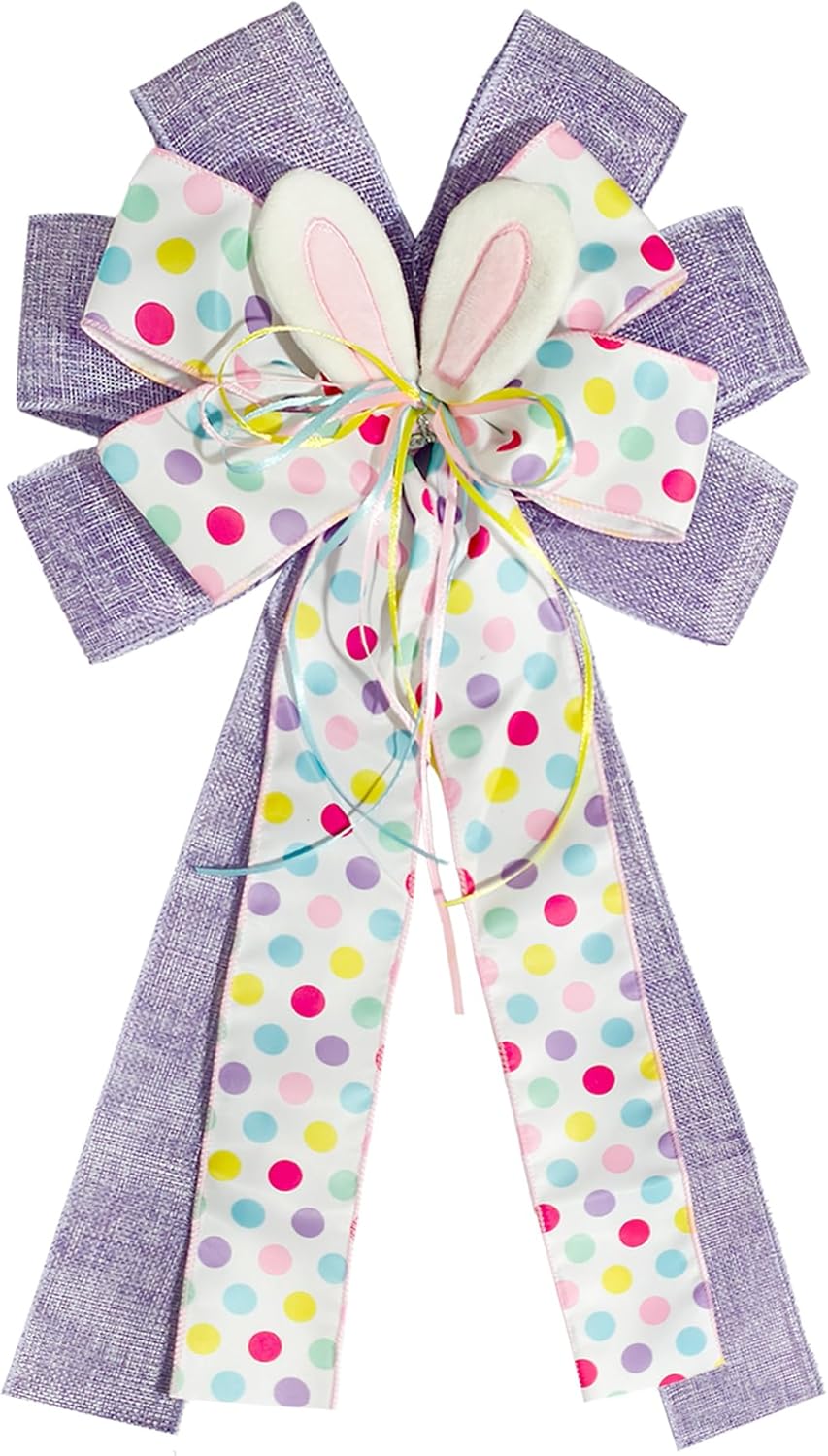 Large Easter Purple Burlap Bow with Bunny Ears, Easter Bow for Wreaths Gifts Tree Topper Gift Baskets Ornament Decorations, Springtime Party Favor for Easter Day