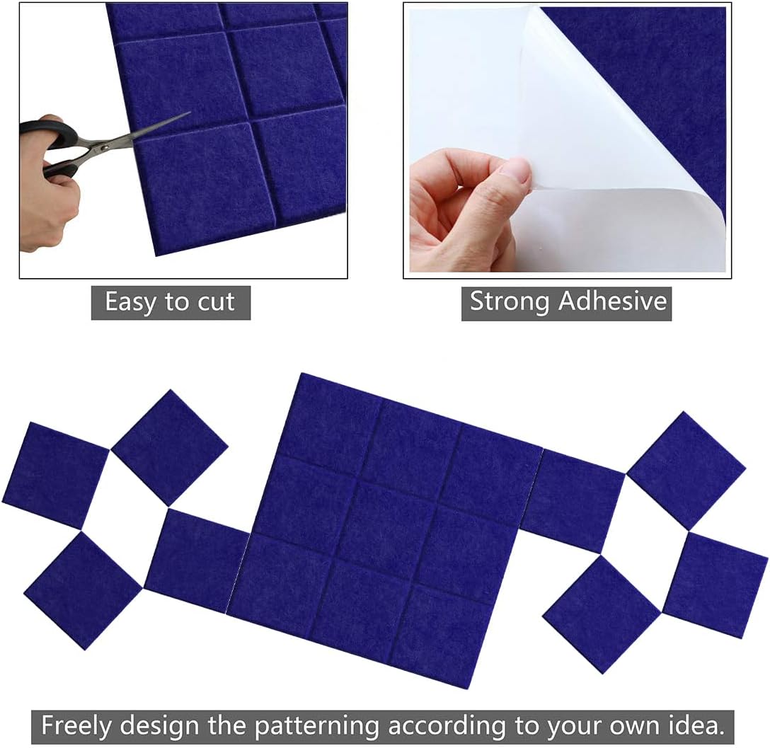 Large Felt Board Tiles for Wall with 30 Push Pins, 11.8"x11.8" Pack of 6 Pin Board Notice Boards