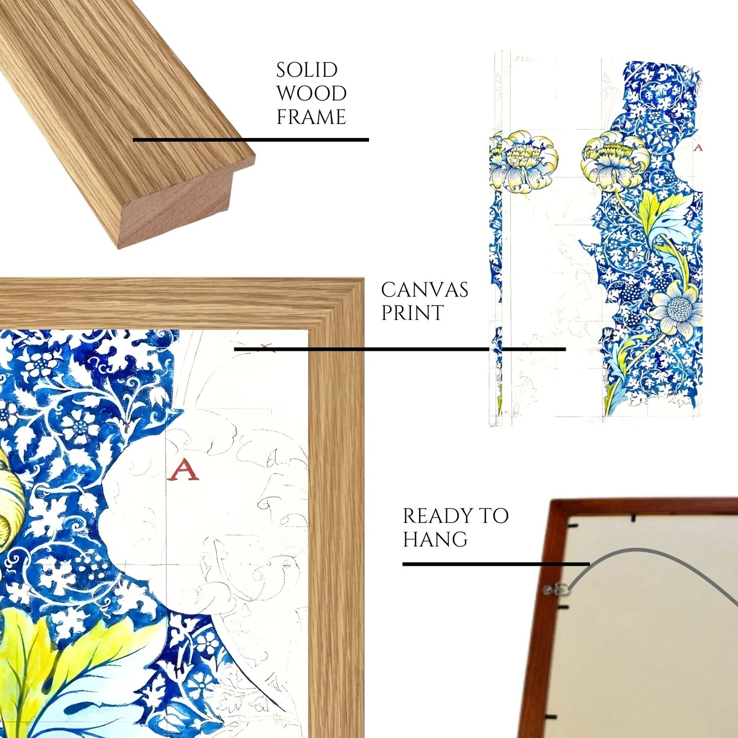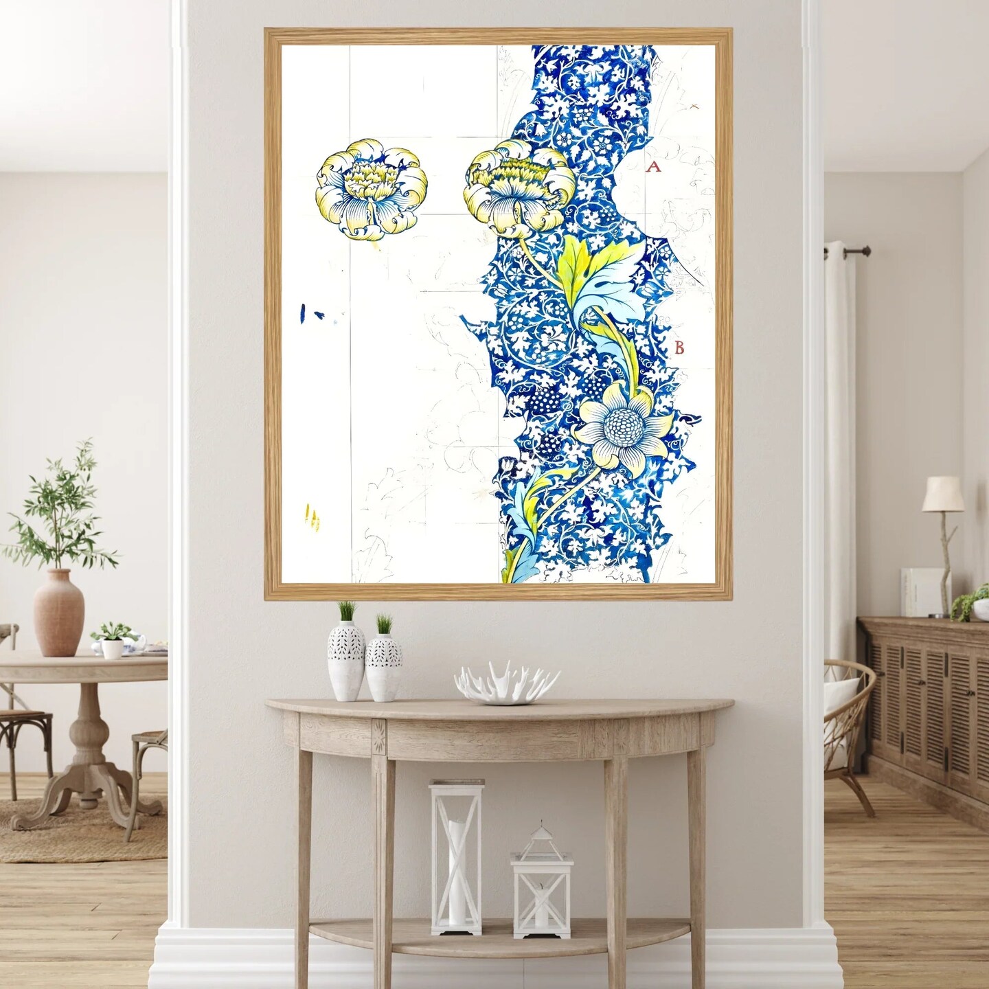 Large Framed Corporate Office Decor Wall Art Canvas 40x60 Inch - William Morris White Blue
