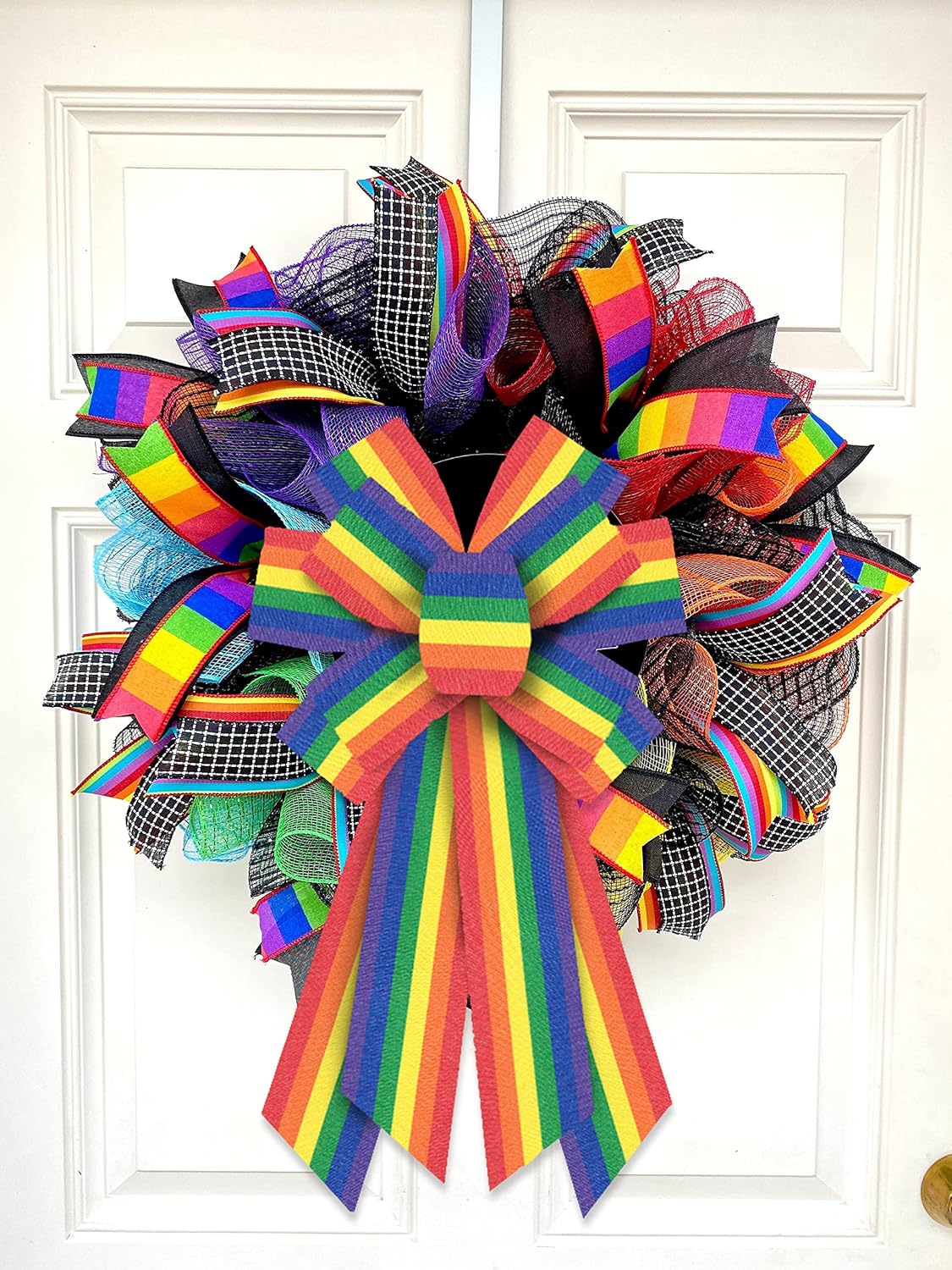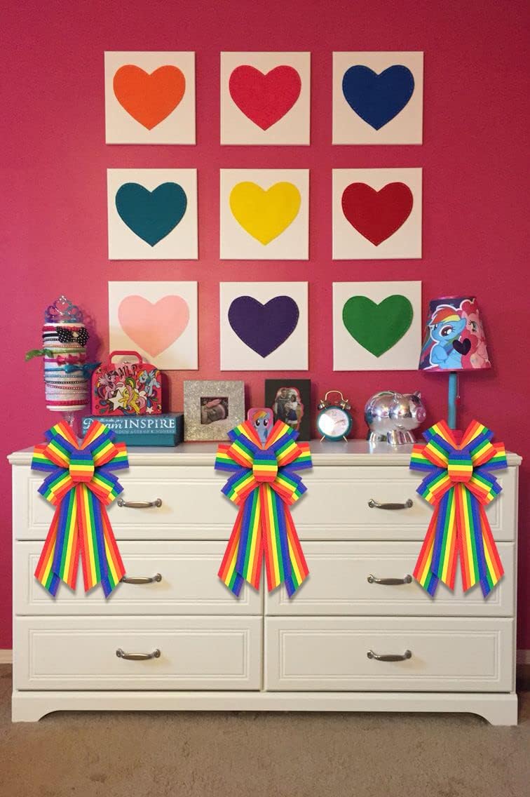 Large Gay Pride Bows for Wreath, LGBTQ Rainbow Wreath Bows Colorful Burlap Bows Love is Love Rainbow Stripes Bow Pride Month Holiday Farmhouse Craft Bows for Front Door Pride Month Decorations
