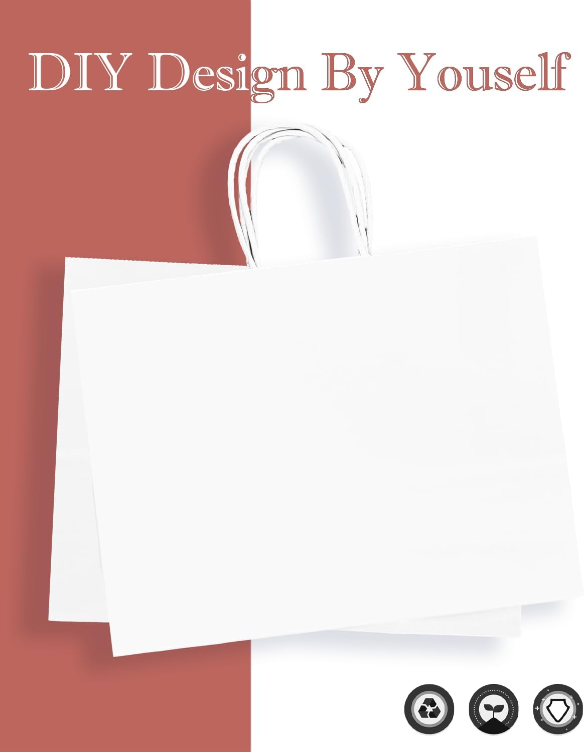 Large Gift Bag with Handles 100PCS Gift Paper Bags White Bags Multiple Uses (Wide Large)