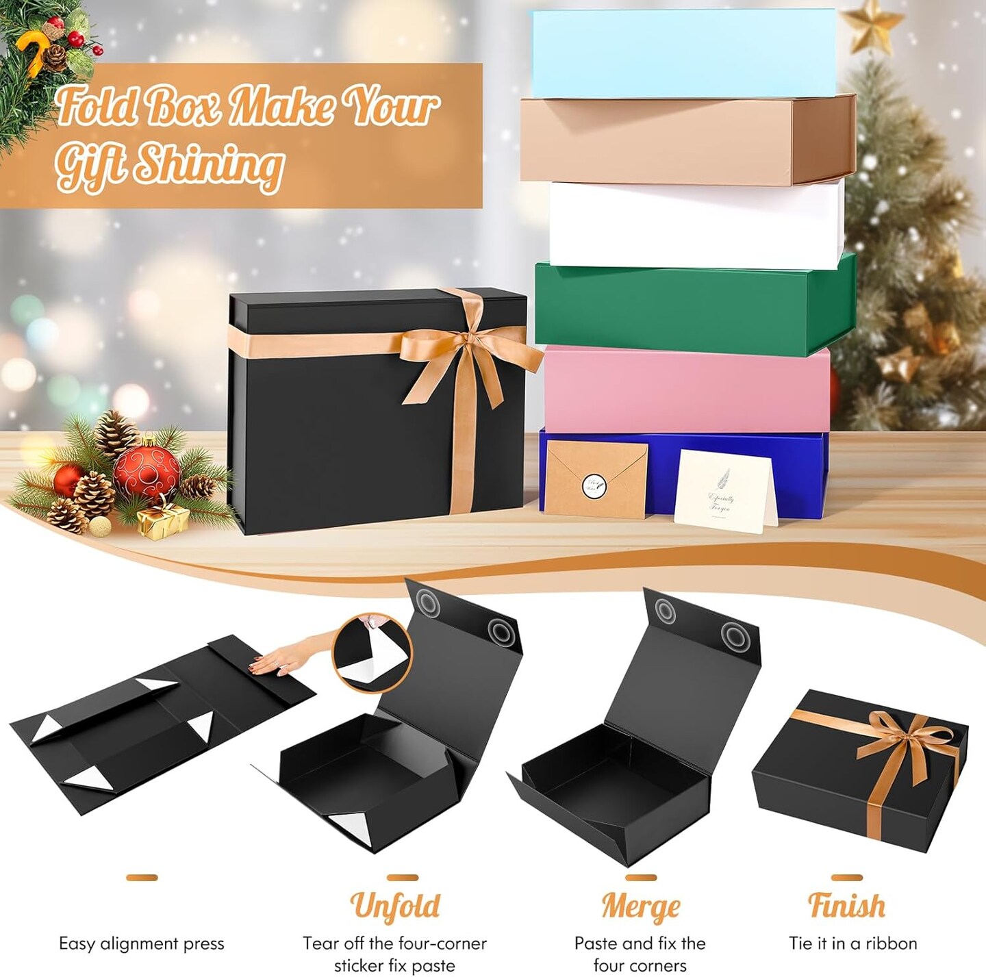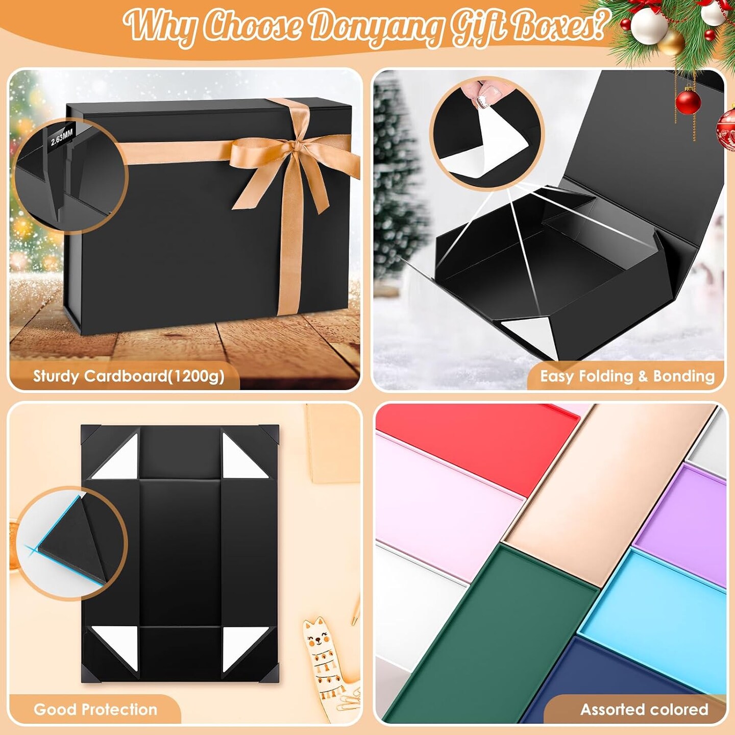 Large Gift Box, 13"x10"x4" Easter Birthday Gift Boxes for Presents, Mother's Day Basket Essentials, Black boxes with Magnetic Lids, Ribbon, Candy Chocolate Cookie Groomsman Proposal Basket for Wedding