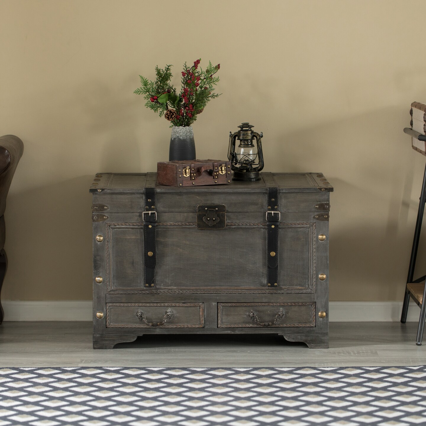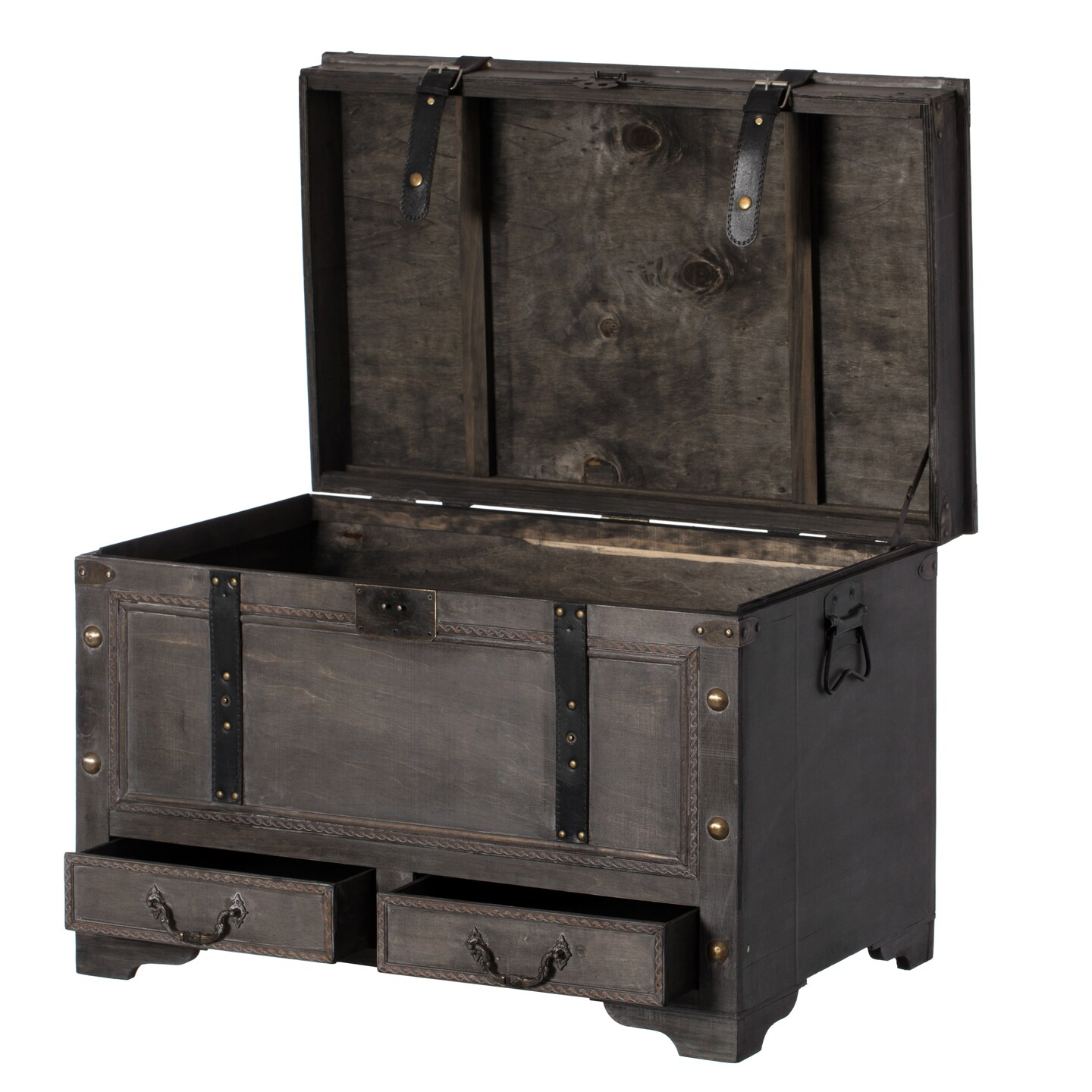 Large Grey Storage Trunk Chest With Drawer Organizer and Handles for Easy Moving
